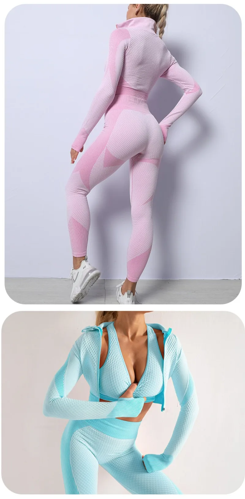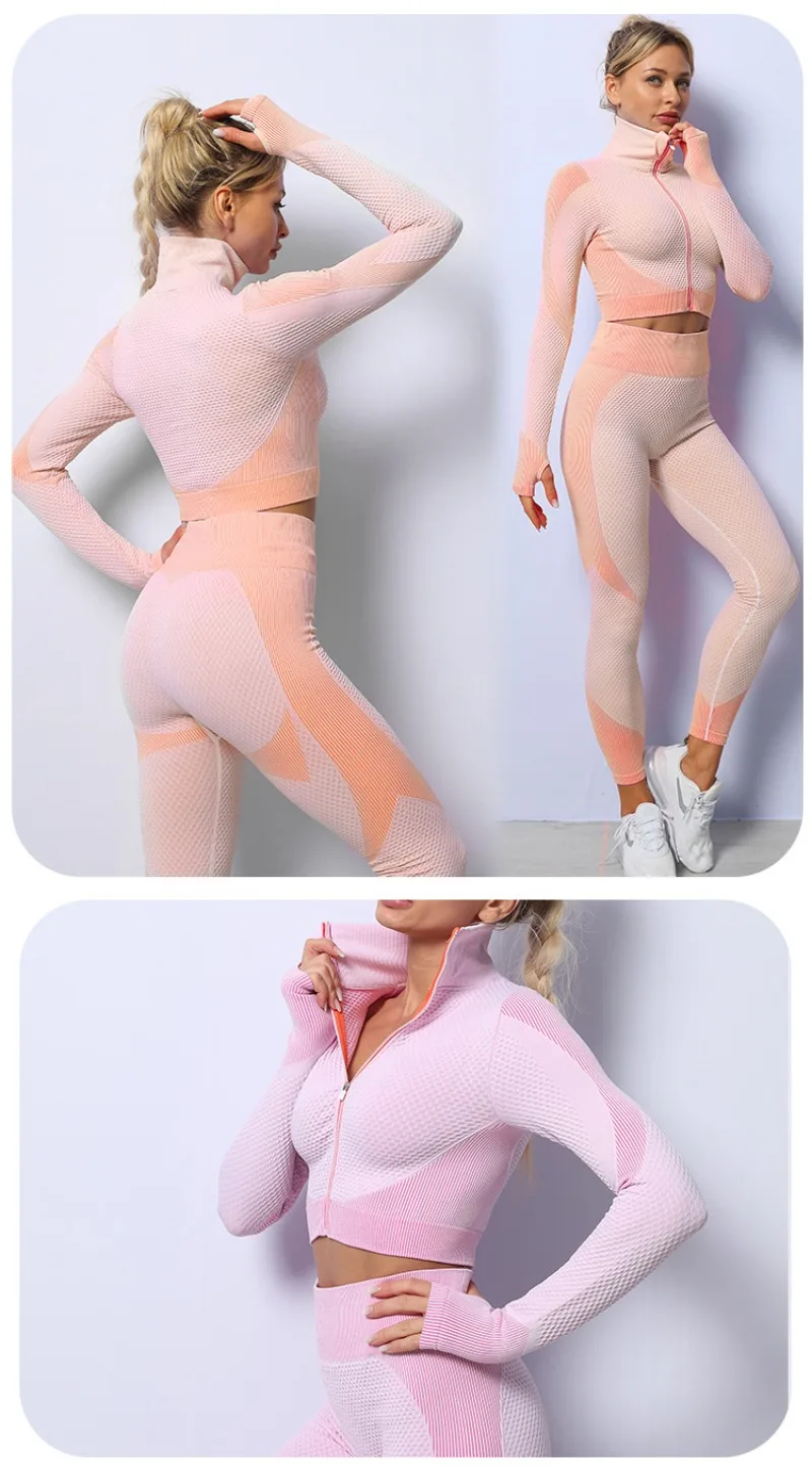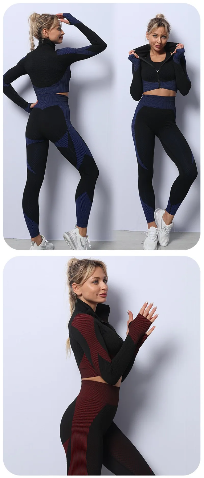 Women's Seamless Yoga Set - Long Sleeve Crop Top + High Waist Leggings