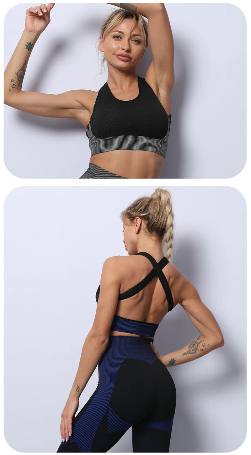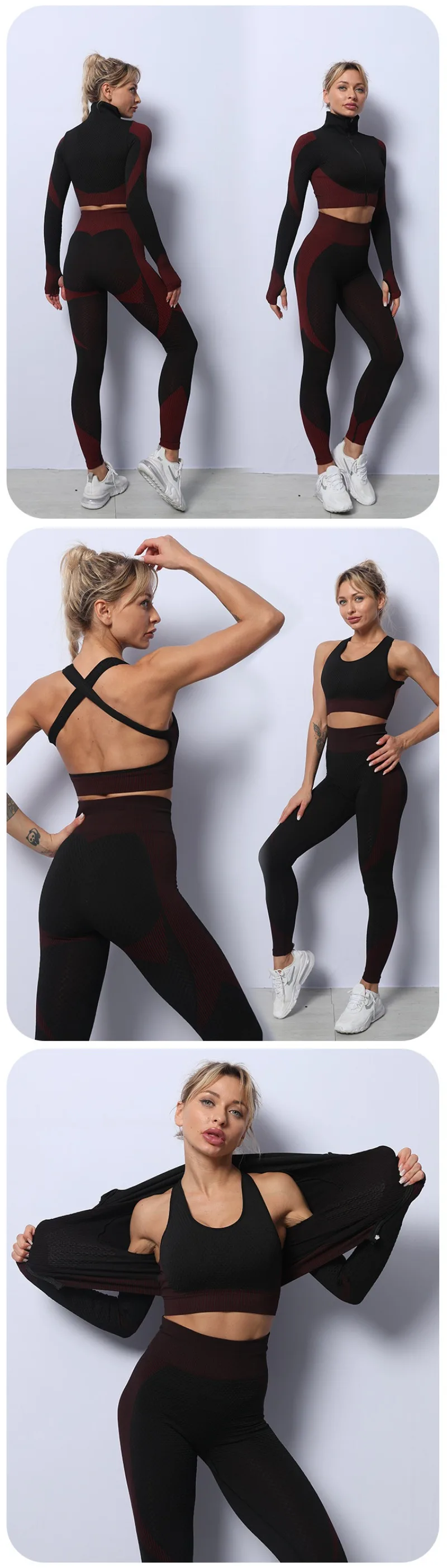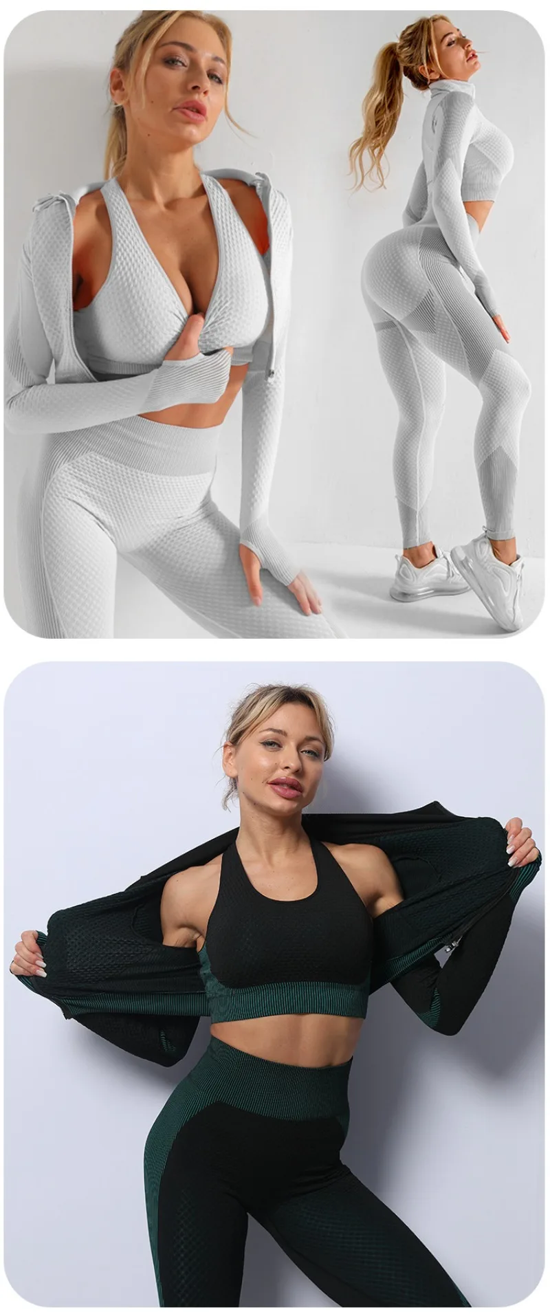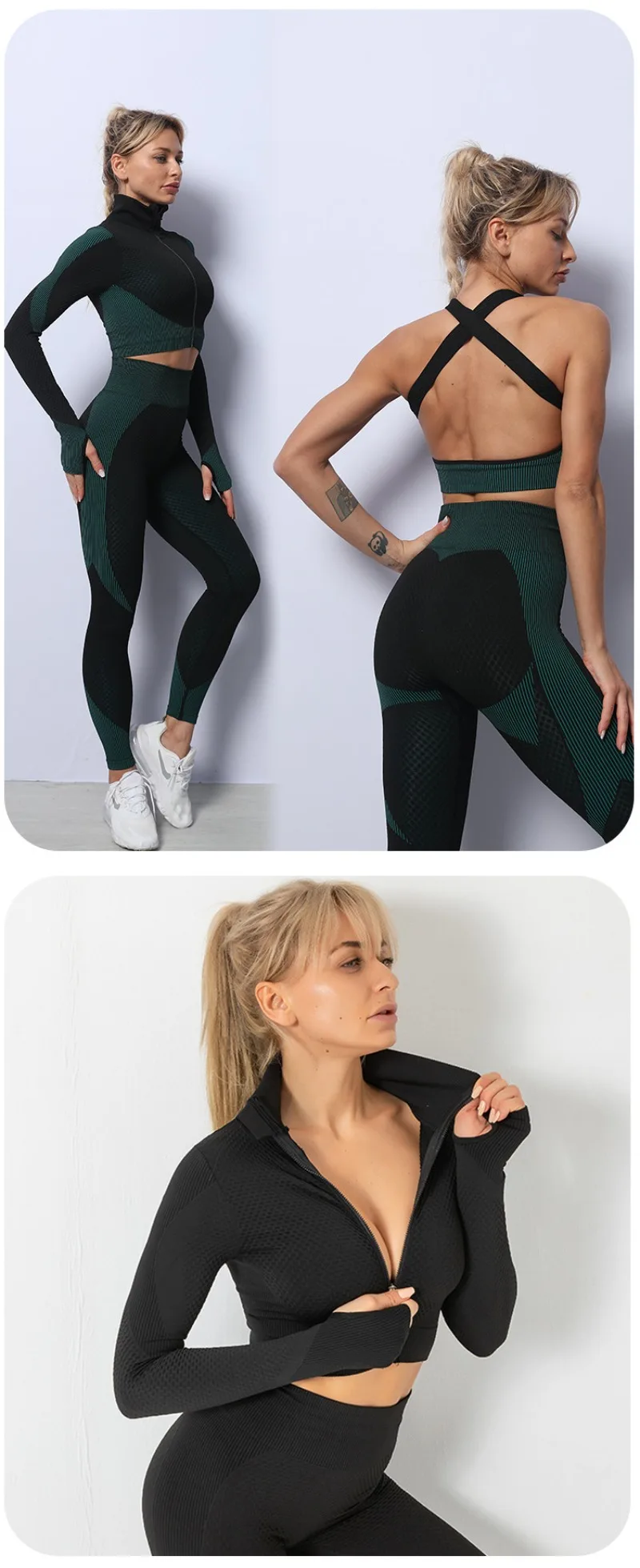 Women's Seamless Yoga Set - Long Sleeve Crop Top + High Waist Leggings