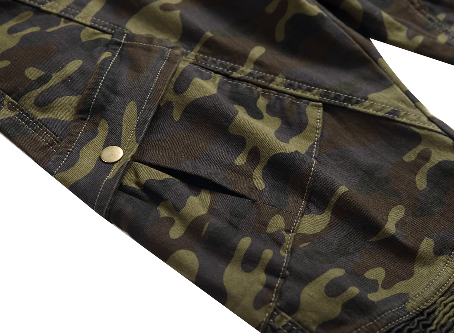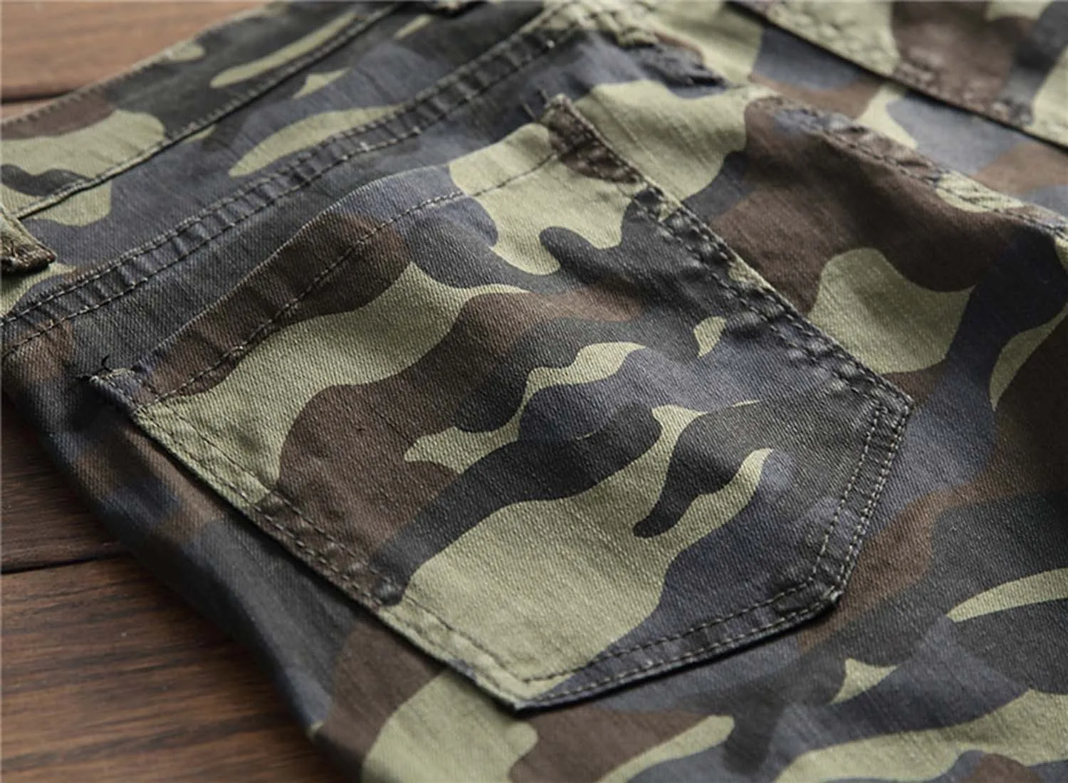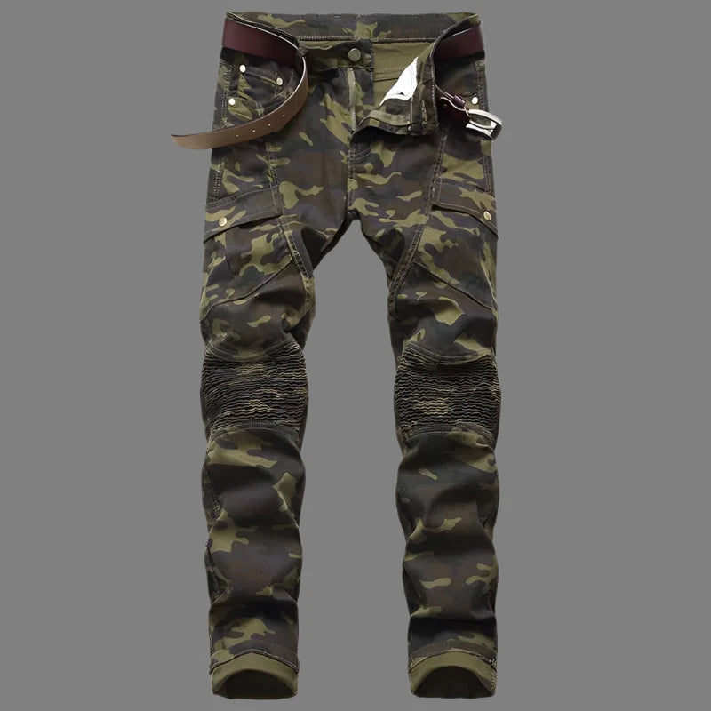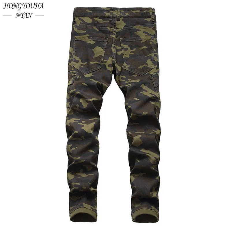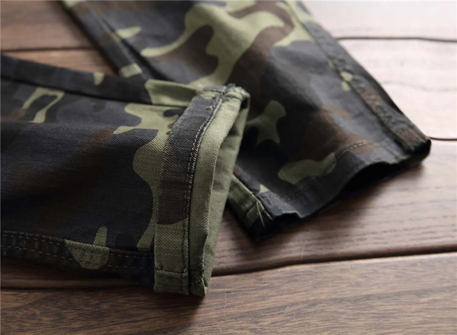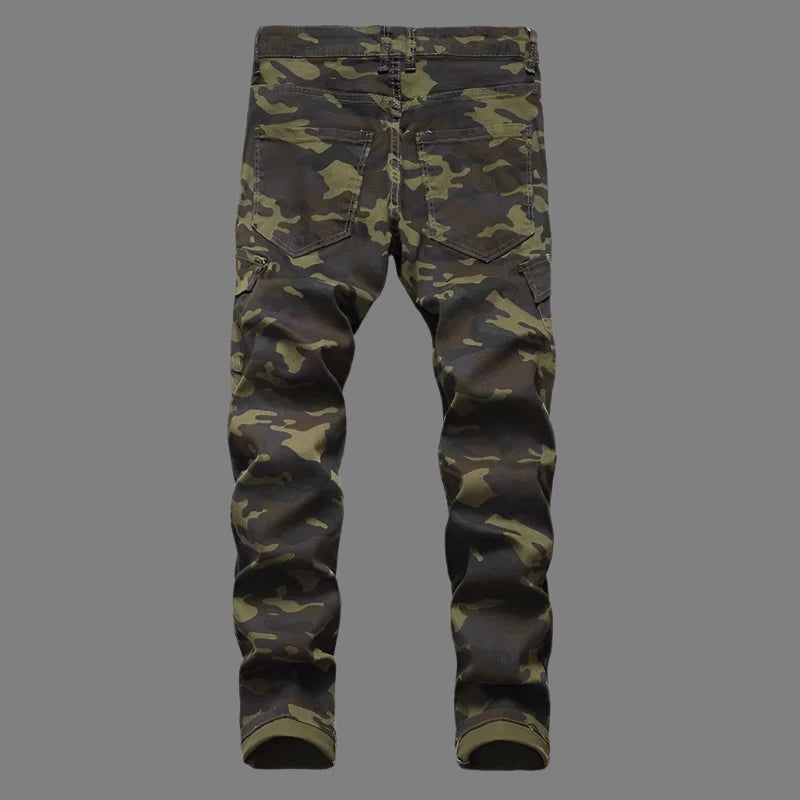 "Straight Army Green" Men's Slim Camouflage Jeans, Cargo Denim Pants