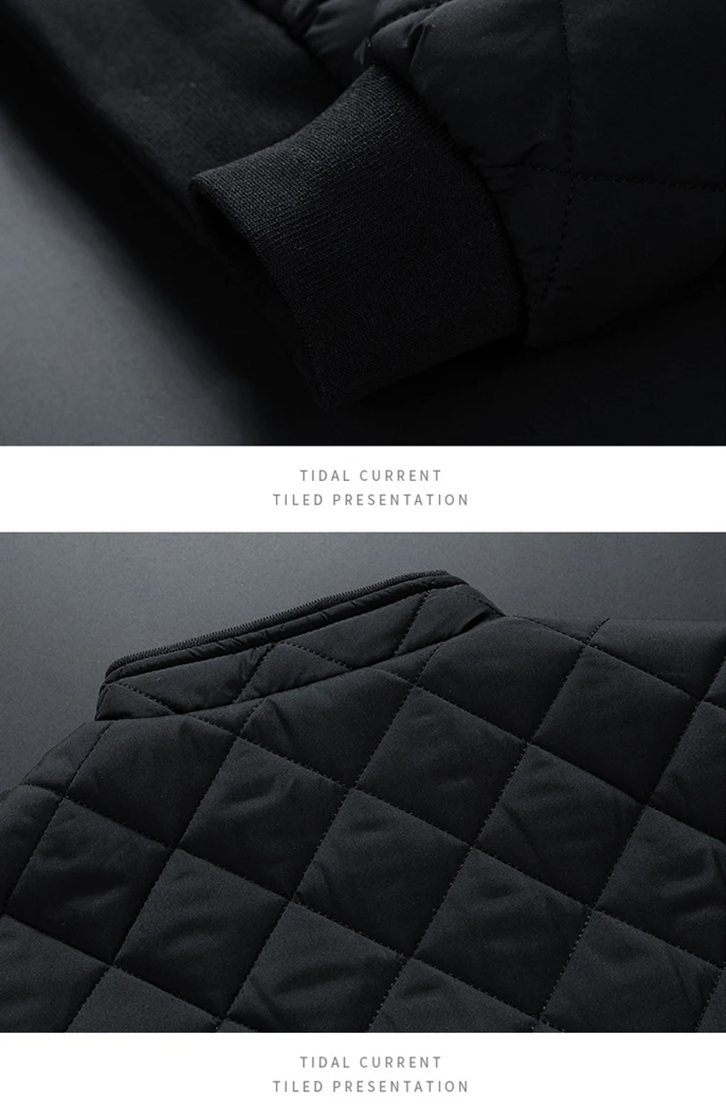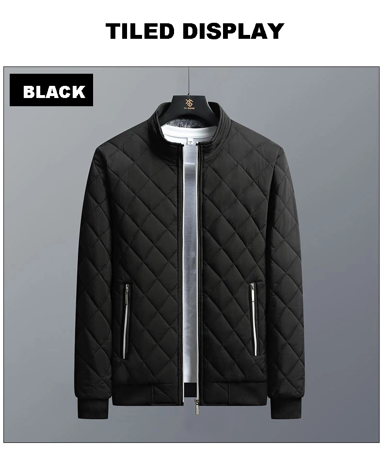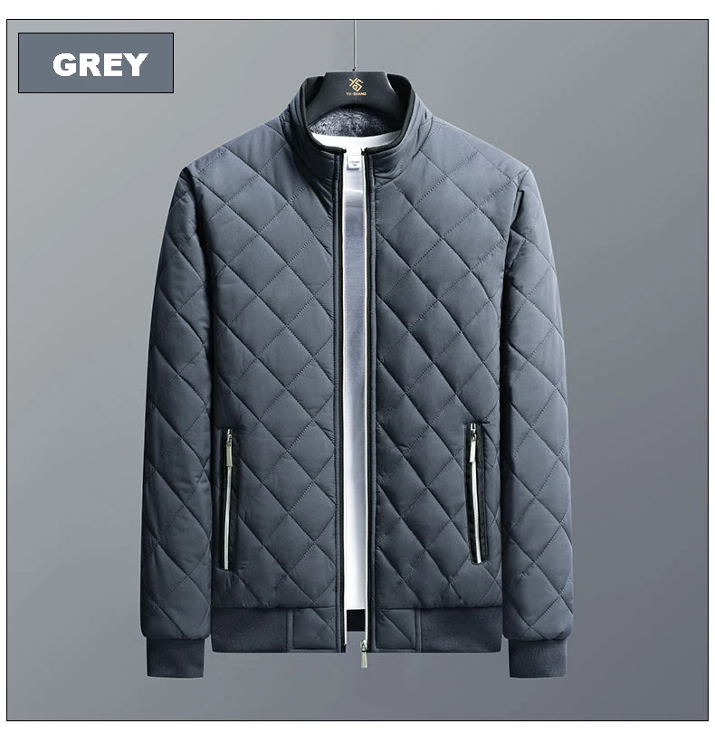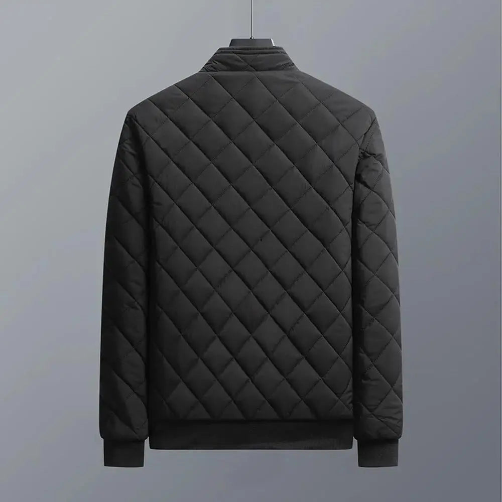 Men's Casual Bomber Jacket, Diamond Pattern Fleece Lined