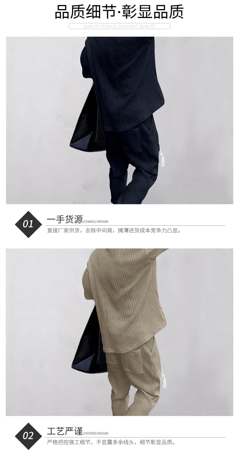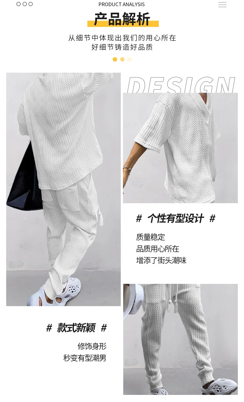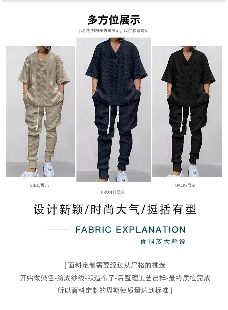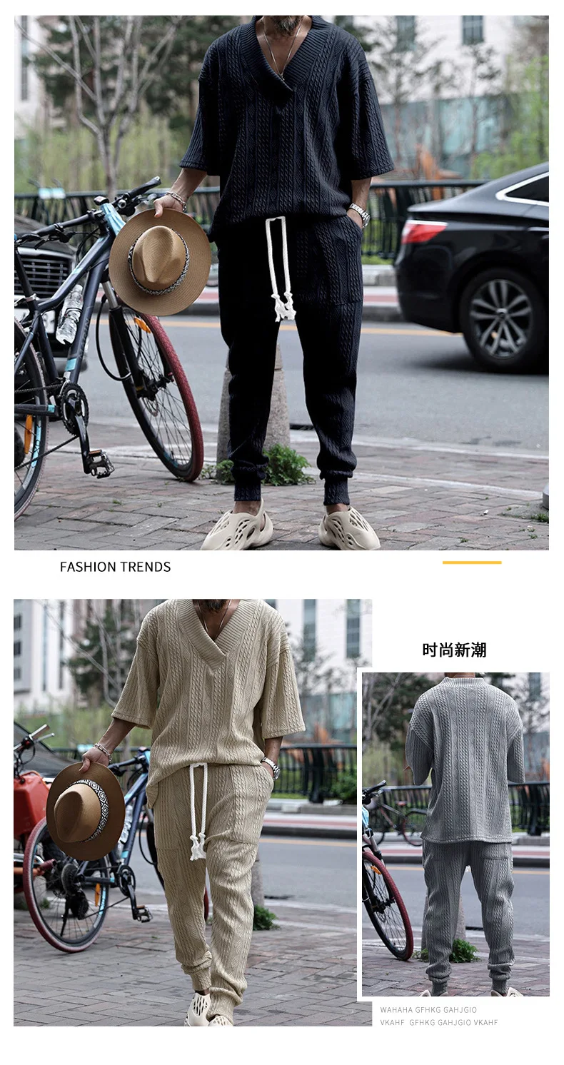 Men's Jacquard Knitwear Set, V-Neck Top and Pants