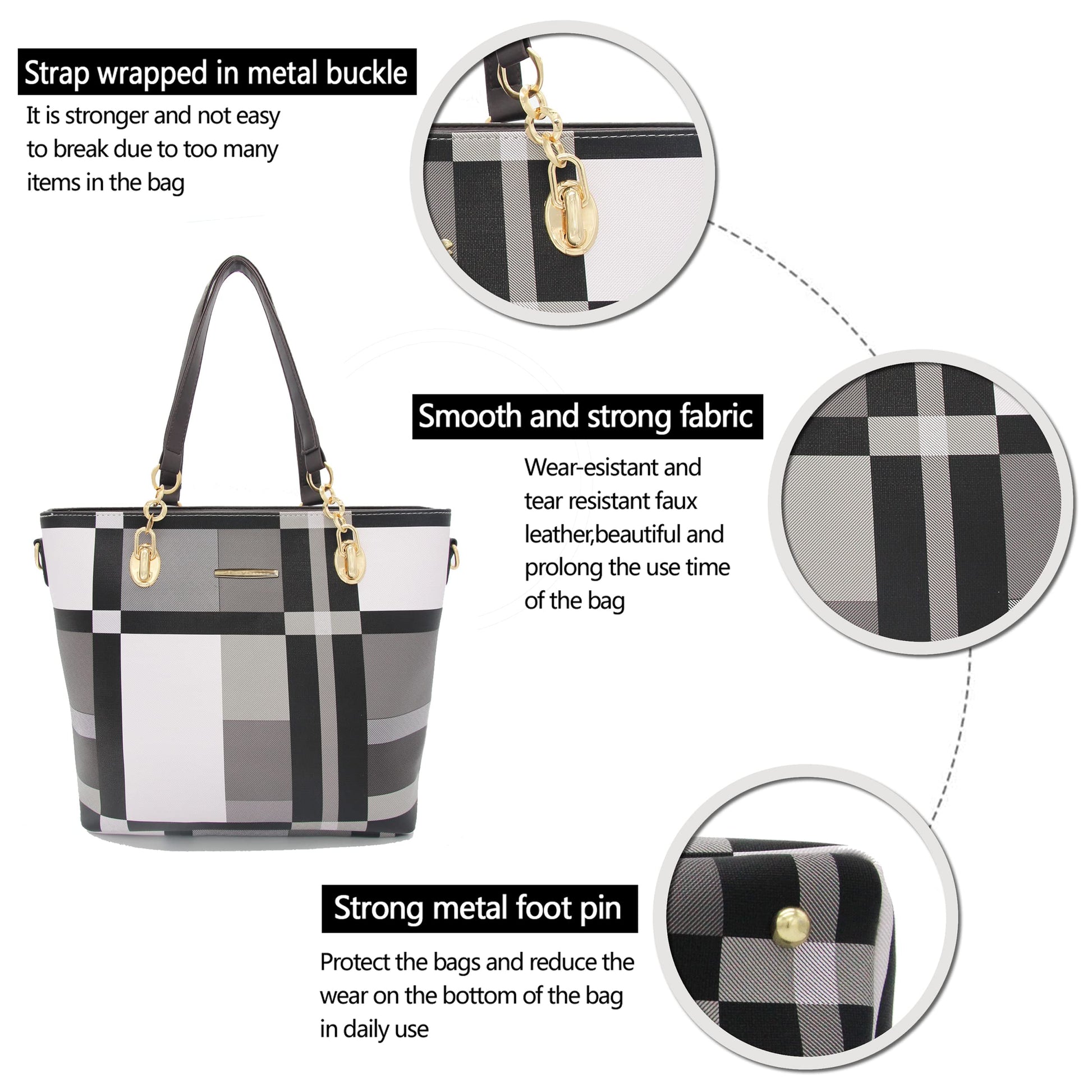 - 2E-youth 6pcs purse set designer handbags for women! Black purse color matching design, interpretation of a simple sense of fashion. Multi layered interior design, you can easily in any situation. Durable large tote bag can hold 14-inch Laptop or tablet, A4 documents or books, and your favorite high heels. Satchel shoulder bag can hold coin purse, long wallet, sunglasses, umbrella, cosmetics and other items.2E-youth clutch purse can hold your keys, lipstick and other little items.