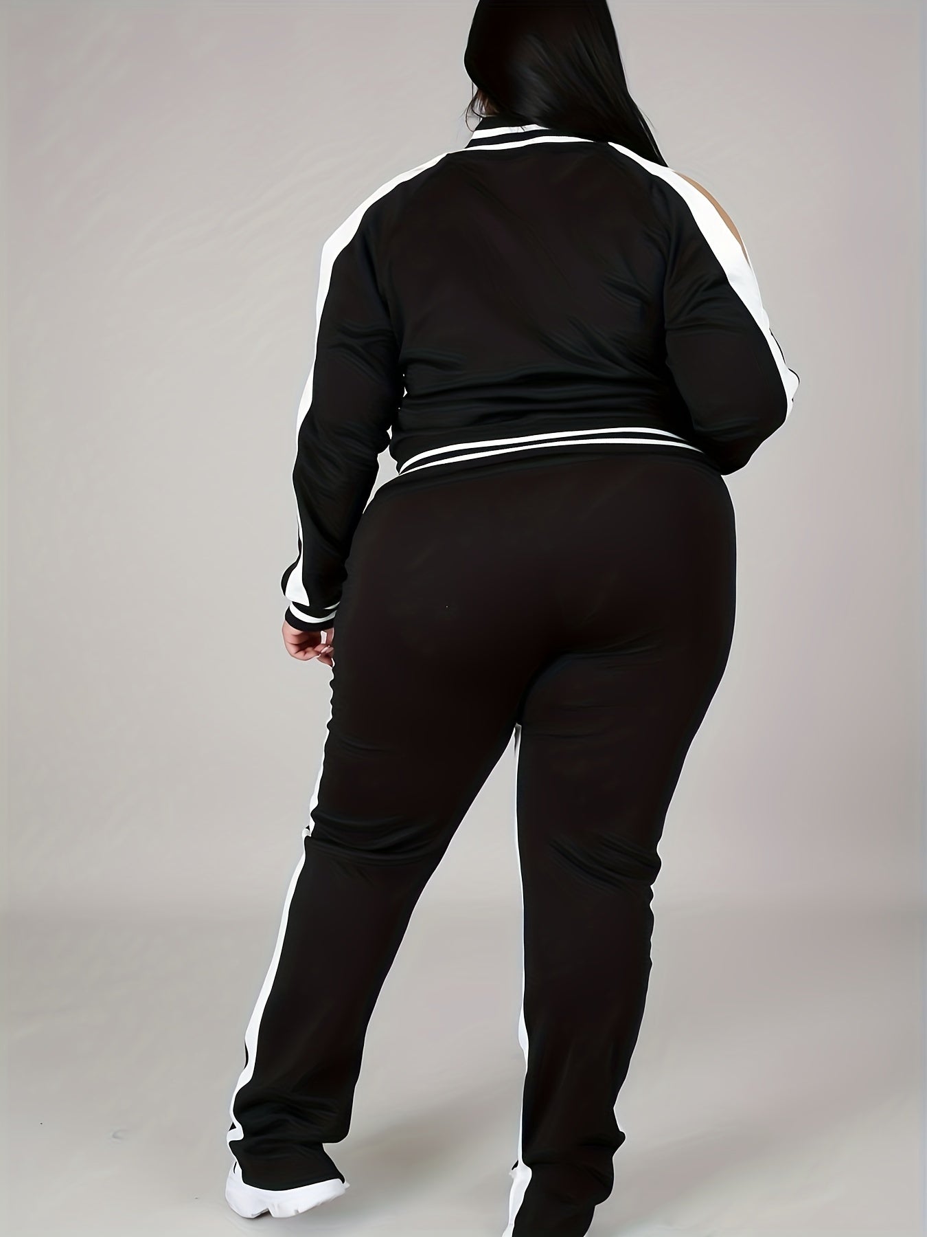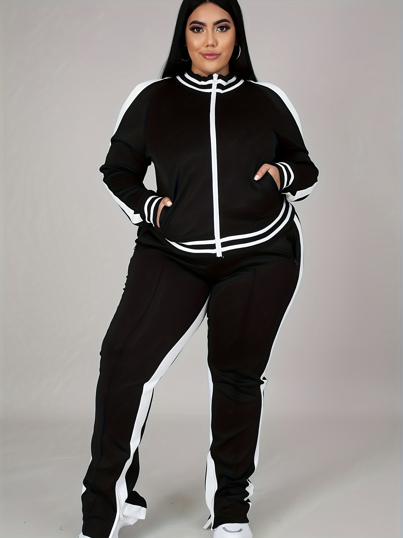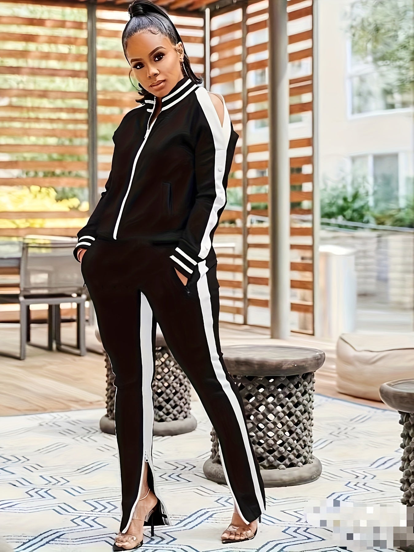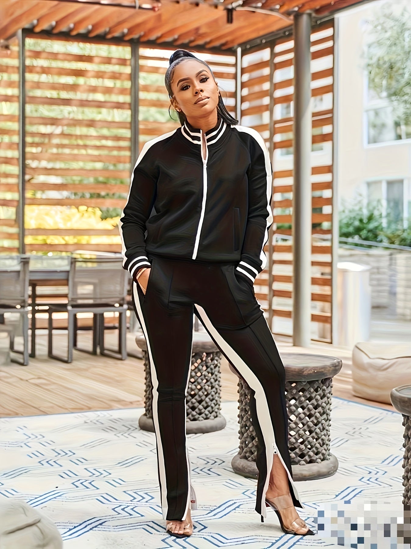 "Sporty Set" Long Sleeve Crew Neck Jacket & Versatile Pants Sports Suit