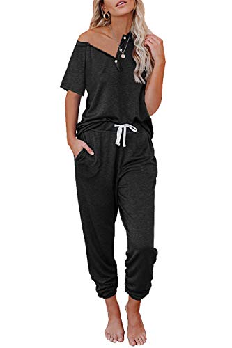 - Features: Long sleeves, Button up off shoulder pullover top, joggers pants with adjustable drawstring, solid color, relaxed fit style, womens 2 piece loungewear set
