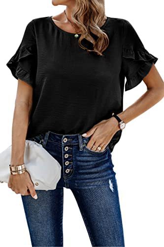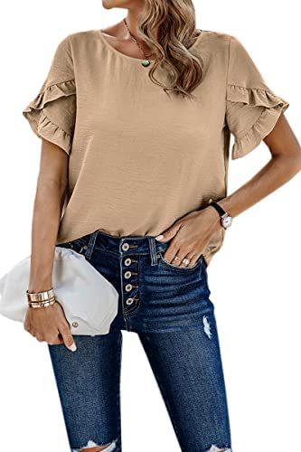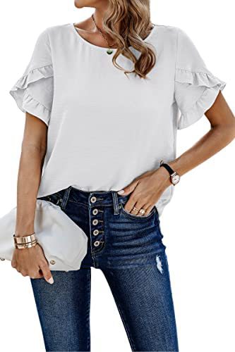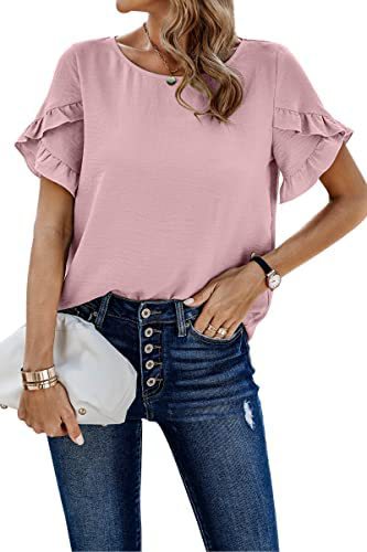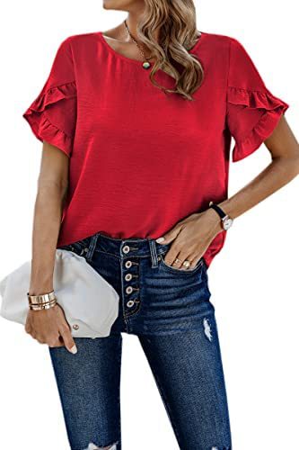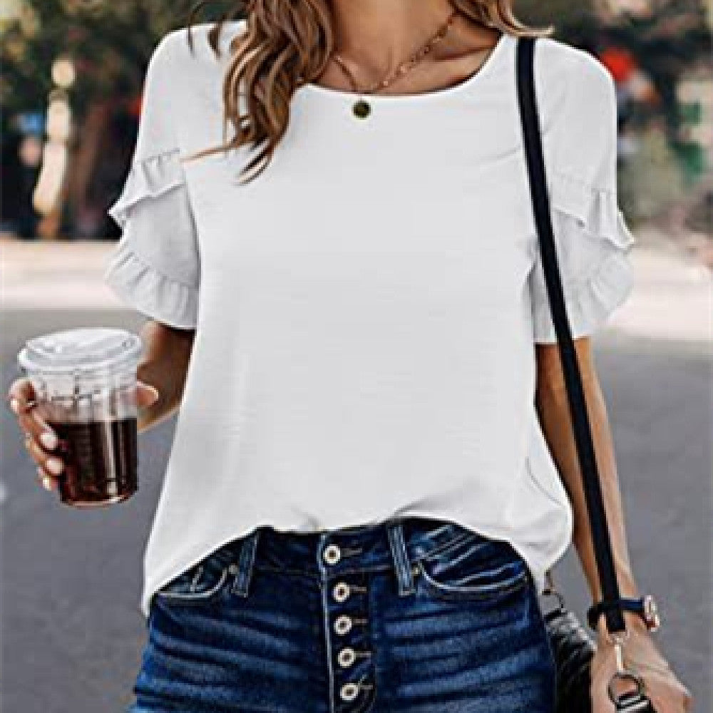 Casual Short Sleeve Loose Top - Solid Color Round Neck