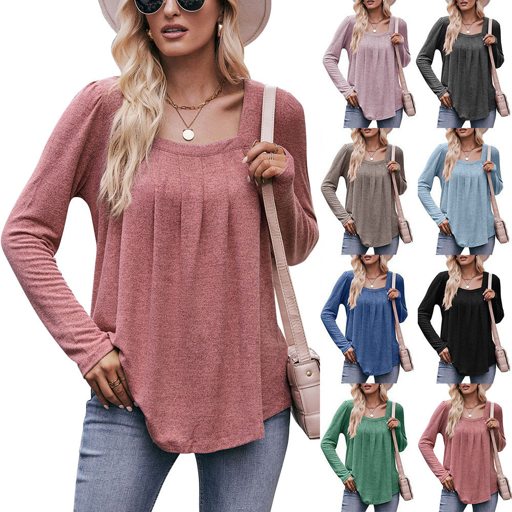 Casual Puff Sleeve Square Collar - Long Sleeve Top