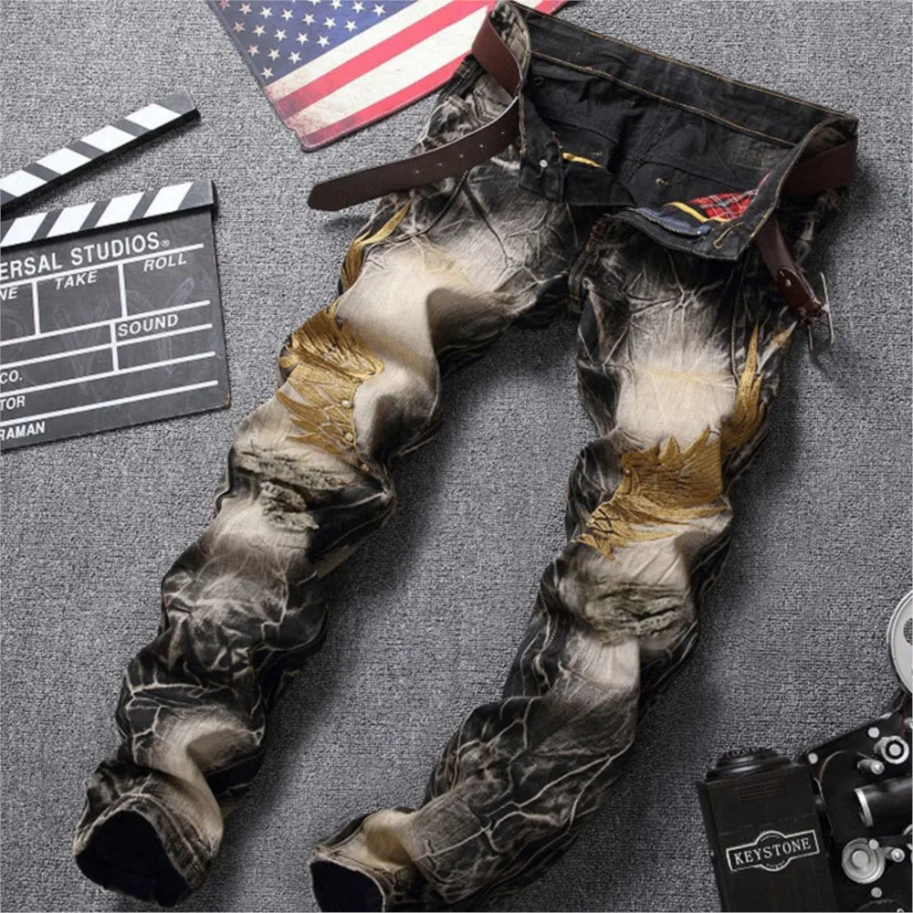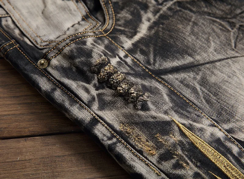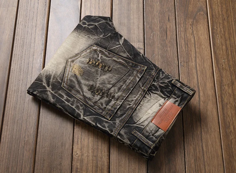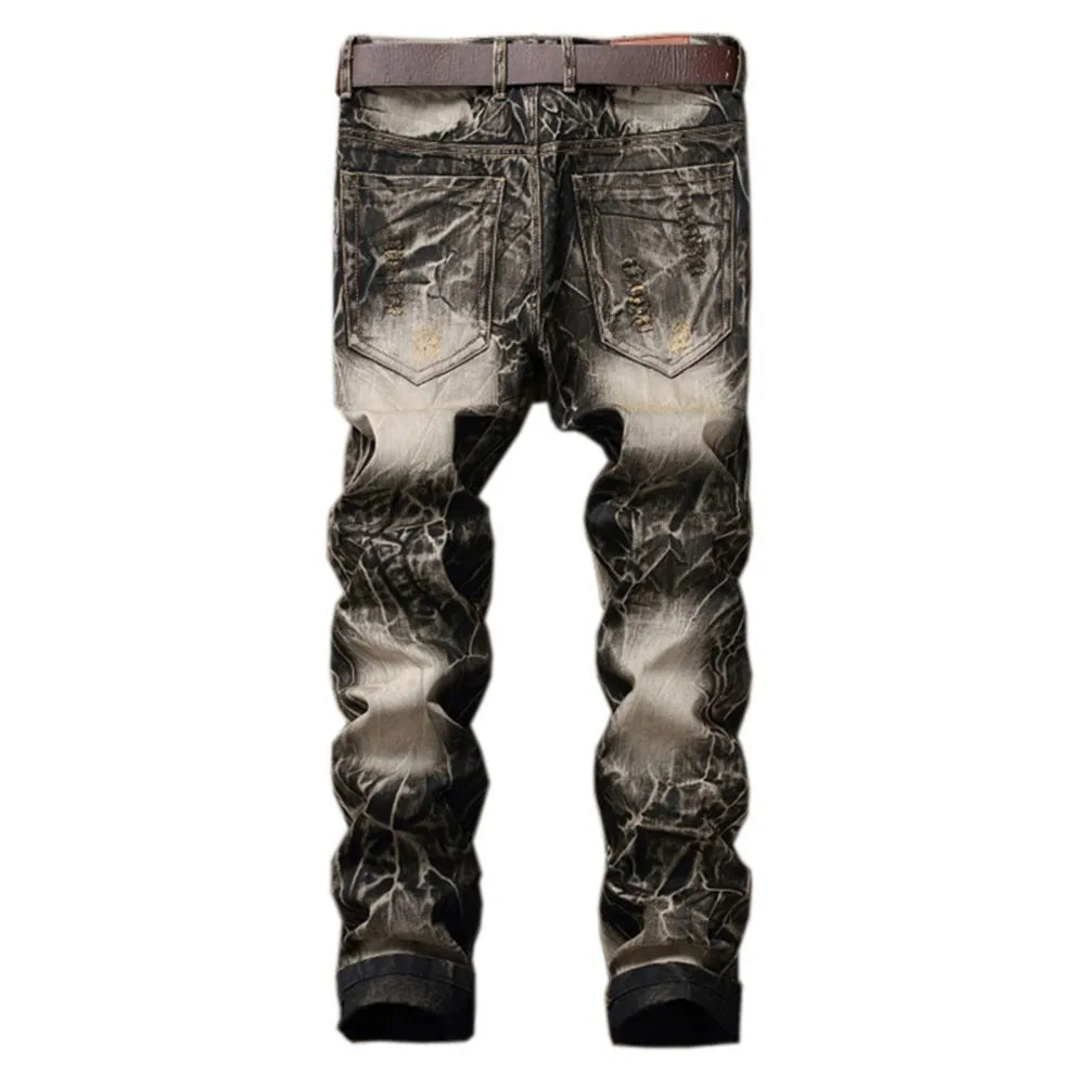 Fashion Ripped Designer Casual Denim Jeans - Straight Black