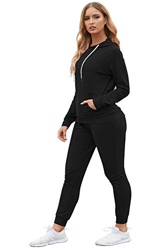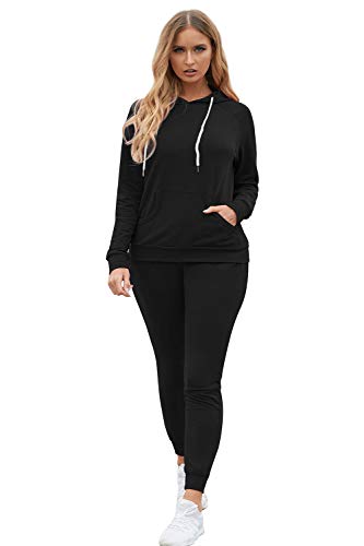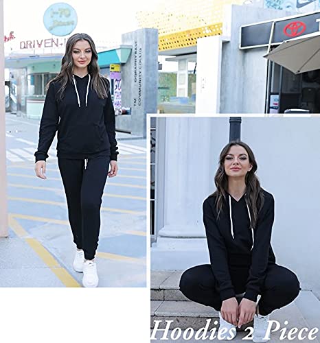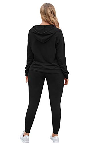 Women's 2-Piece Jogger Suit - Long Sleeve Hoodie & Matching Sweatpants (Black)