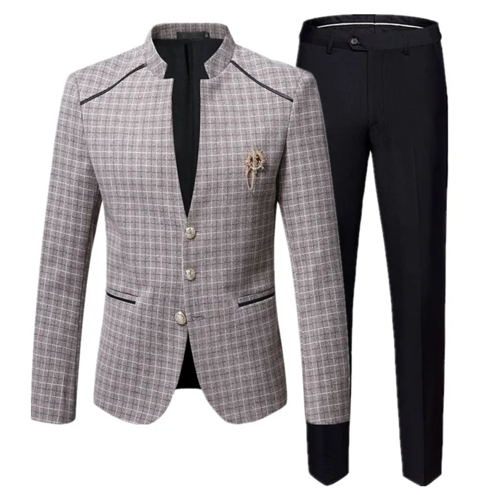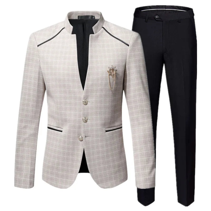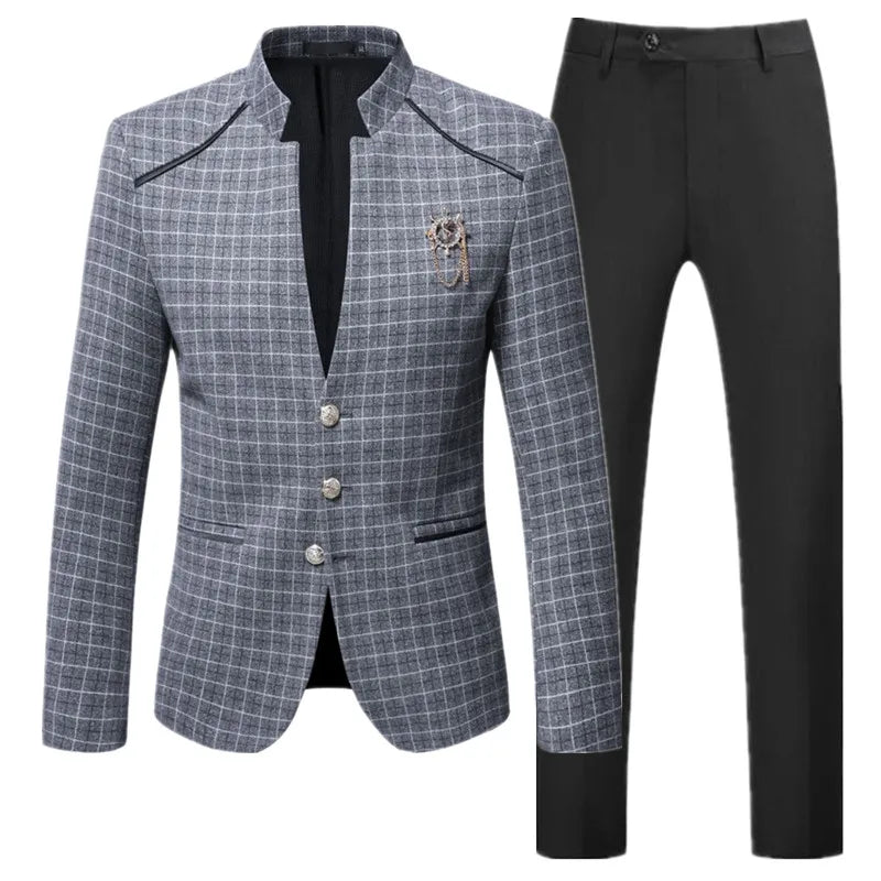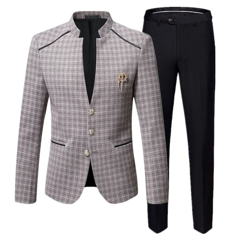 Men's Business Plaid Suit - Blazer & Pants Set