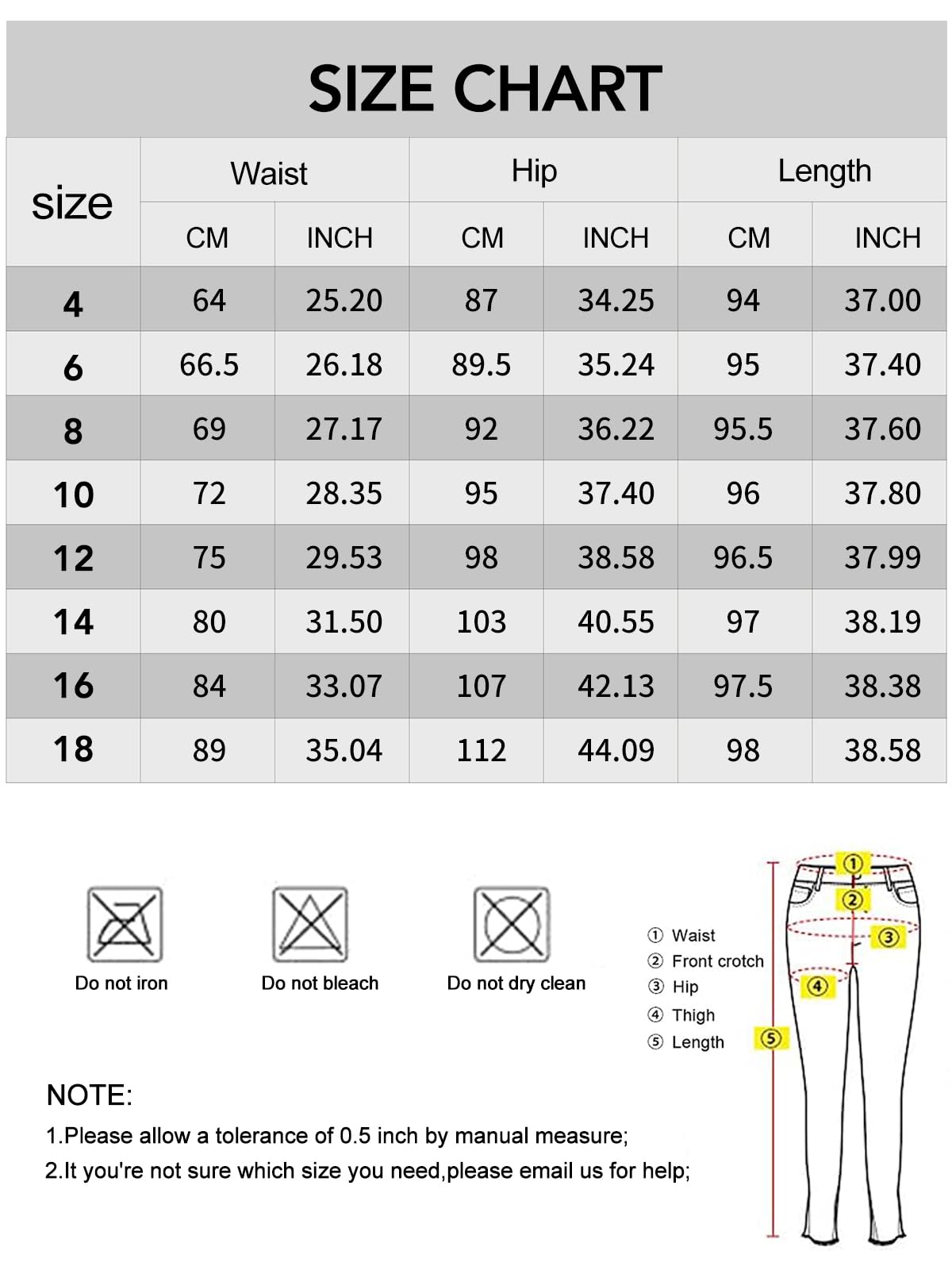 - Please refer to the size chart carefully to help you buy more suitable pants. If you are on the border between two sizes, it is recommended that you order the smaller size because it has super stretch fabric.