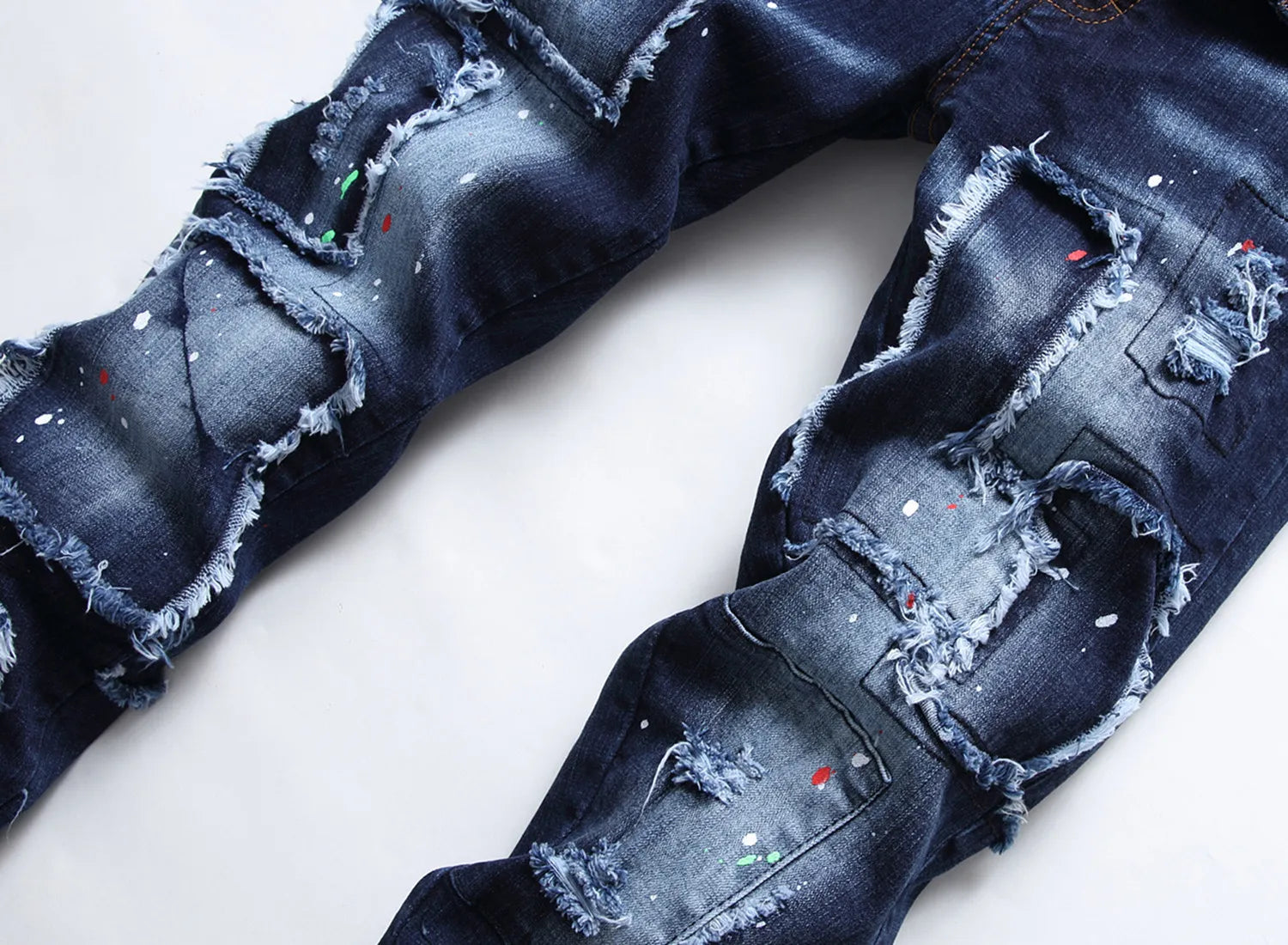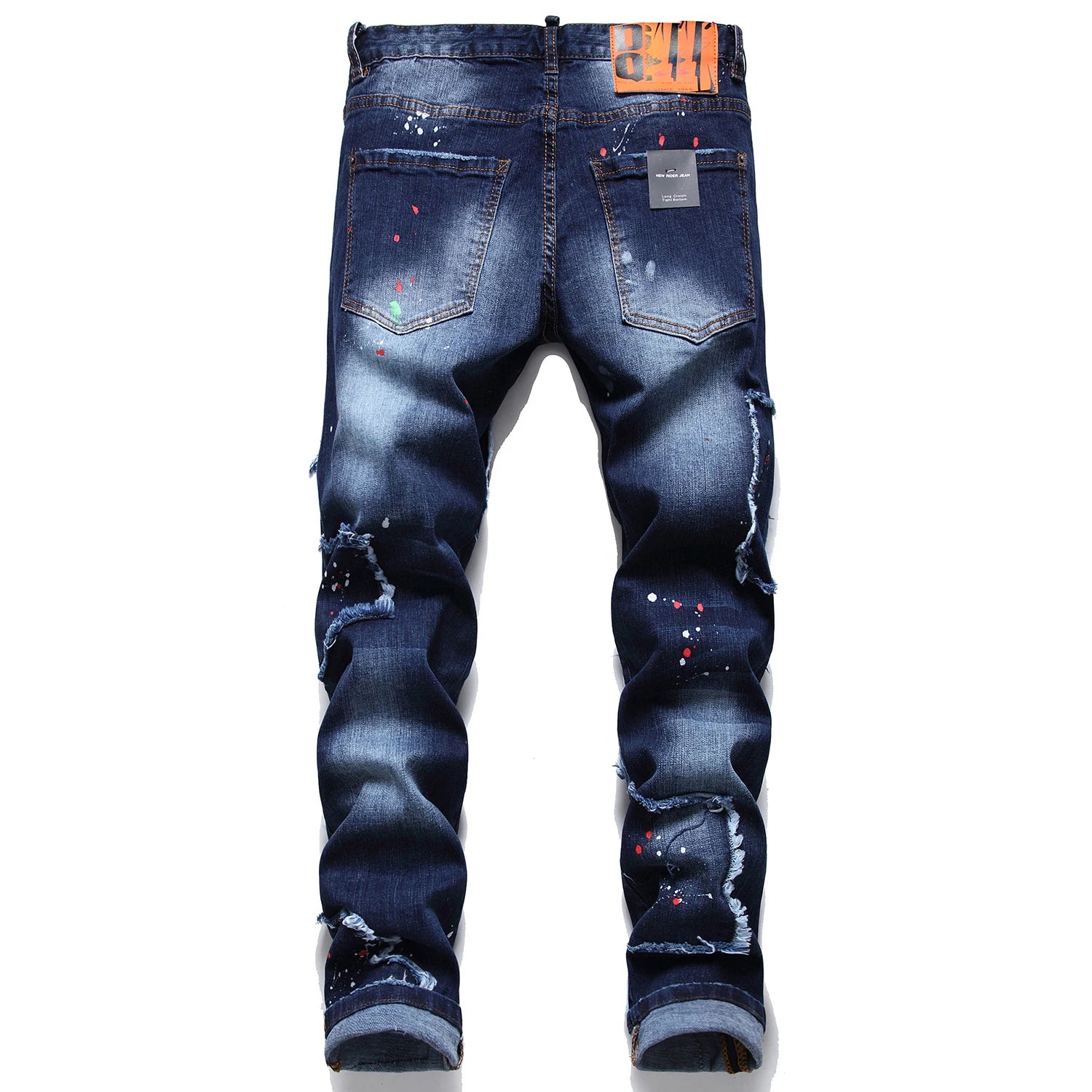 Men’s Slim-Fit Blue Jeans - Dot Paint