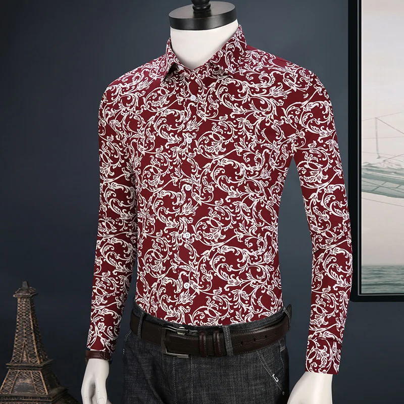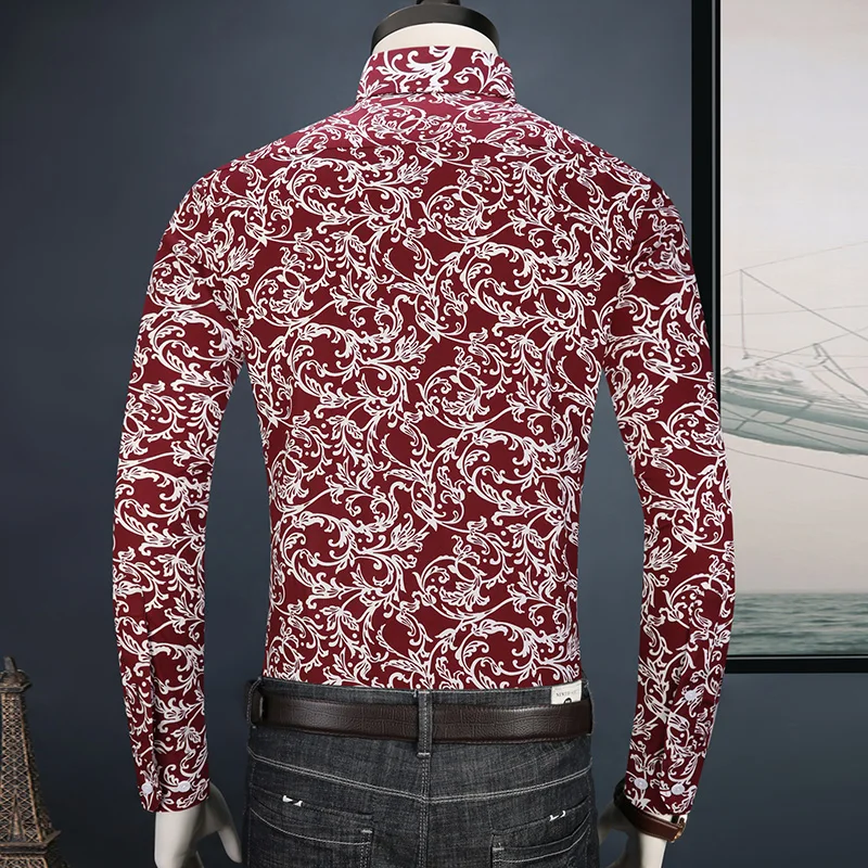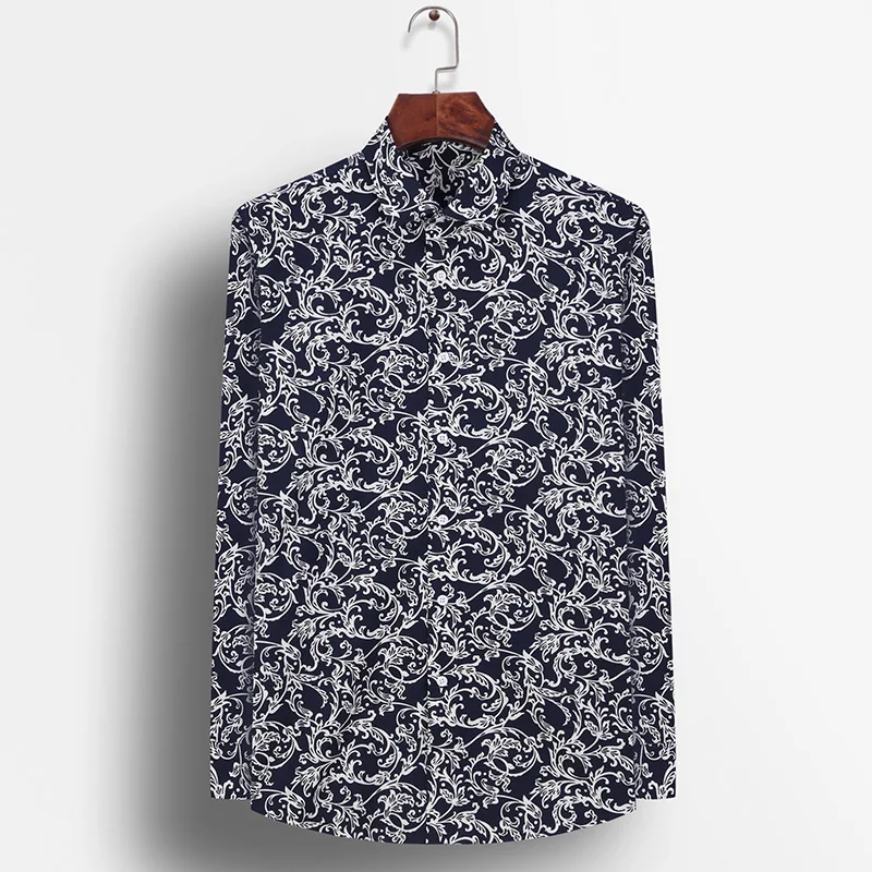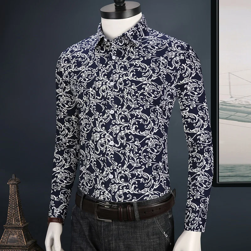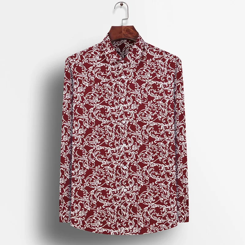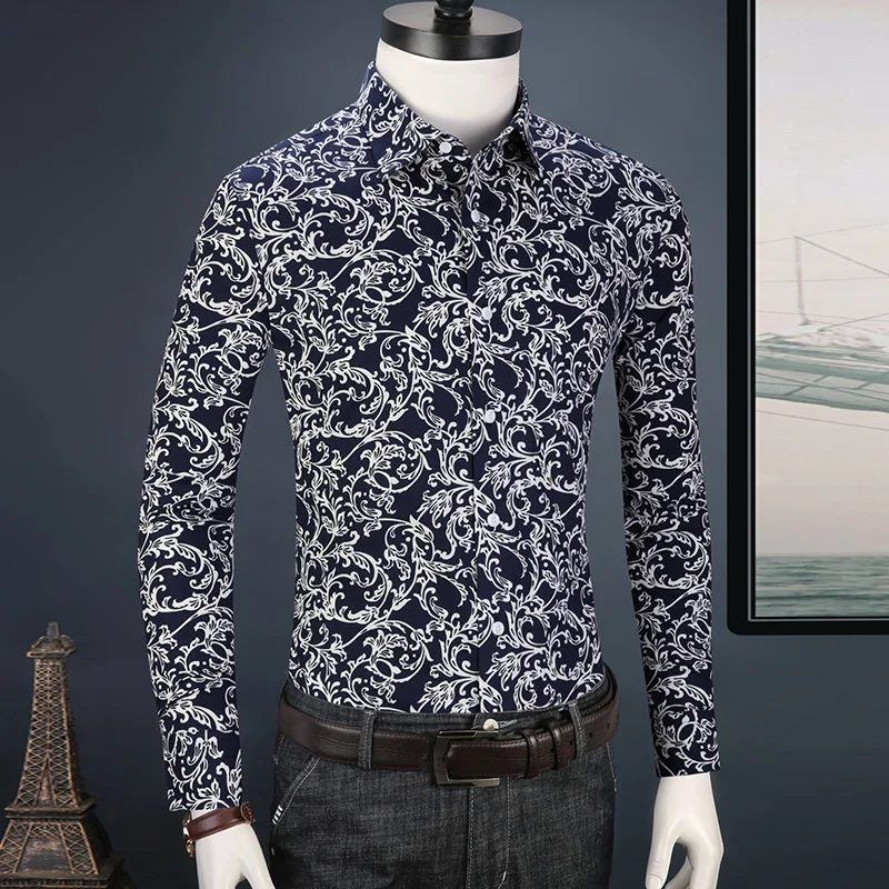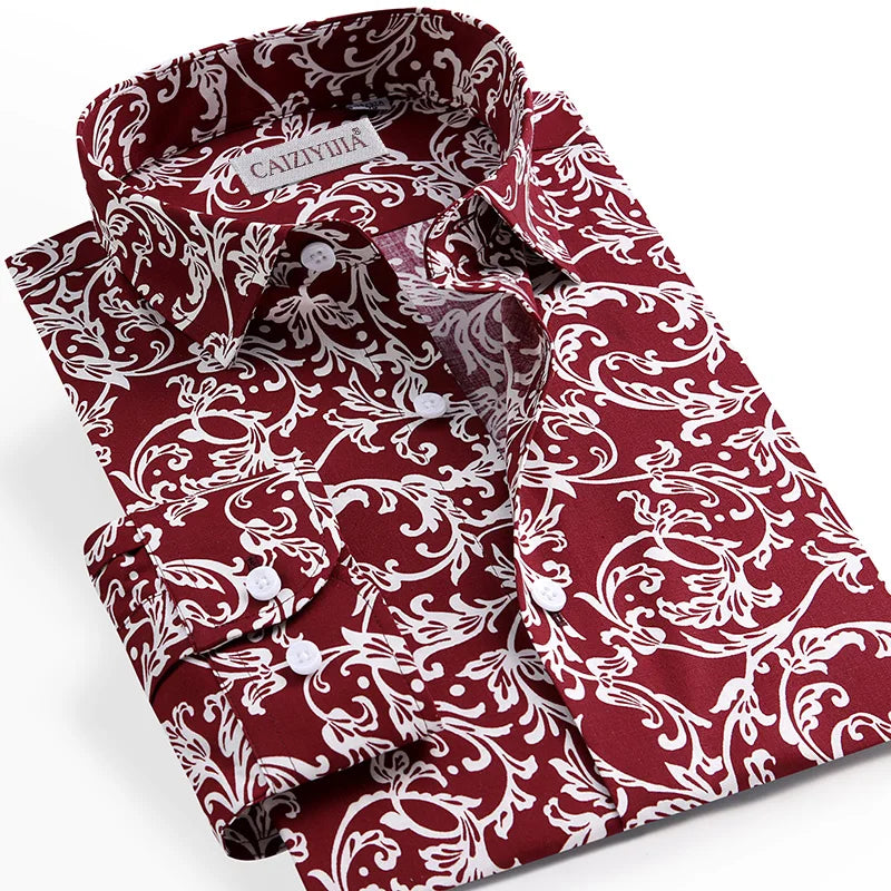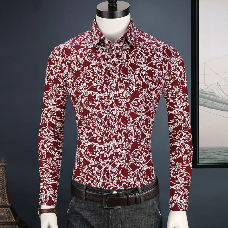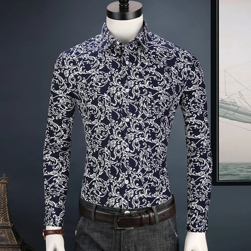 Men's Long Sleeve Floral Print Button-Up Dress Shirt