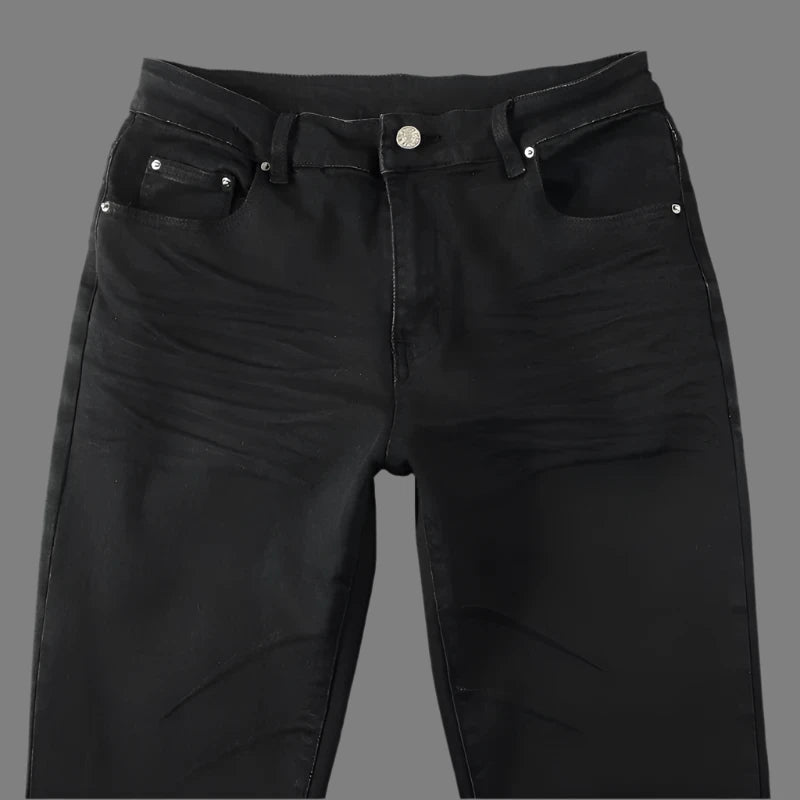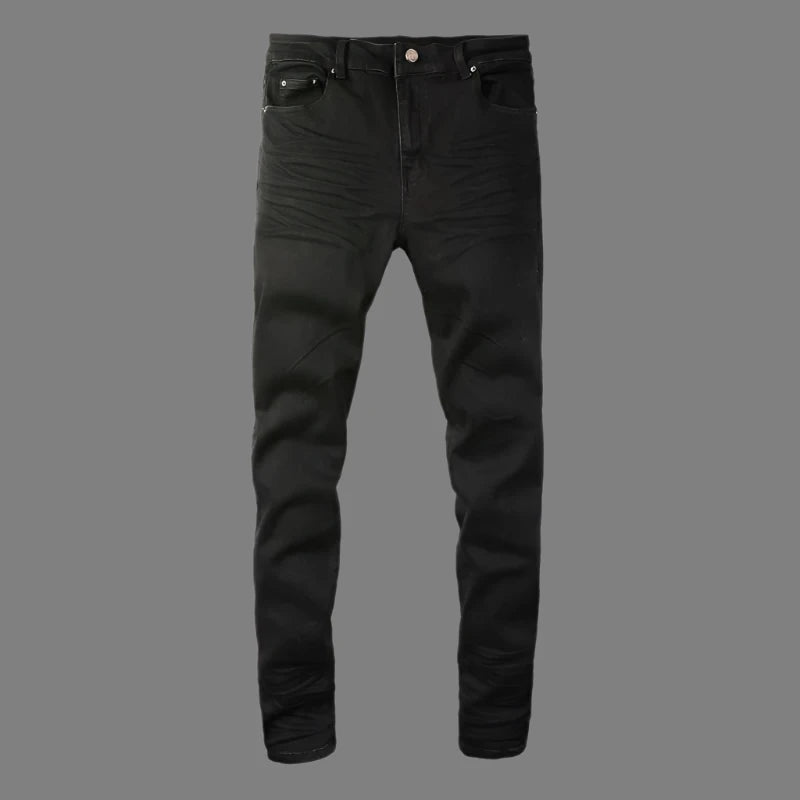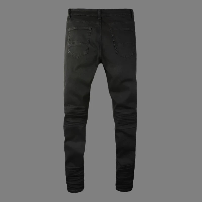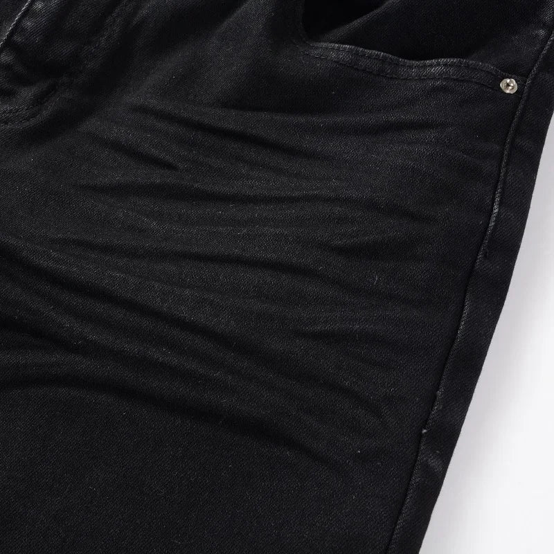 "Italian Drip" Men's Black Distressed - Slim Fit, Stretch Jeans