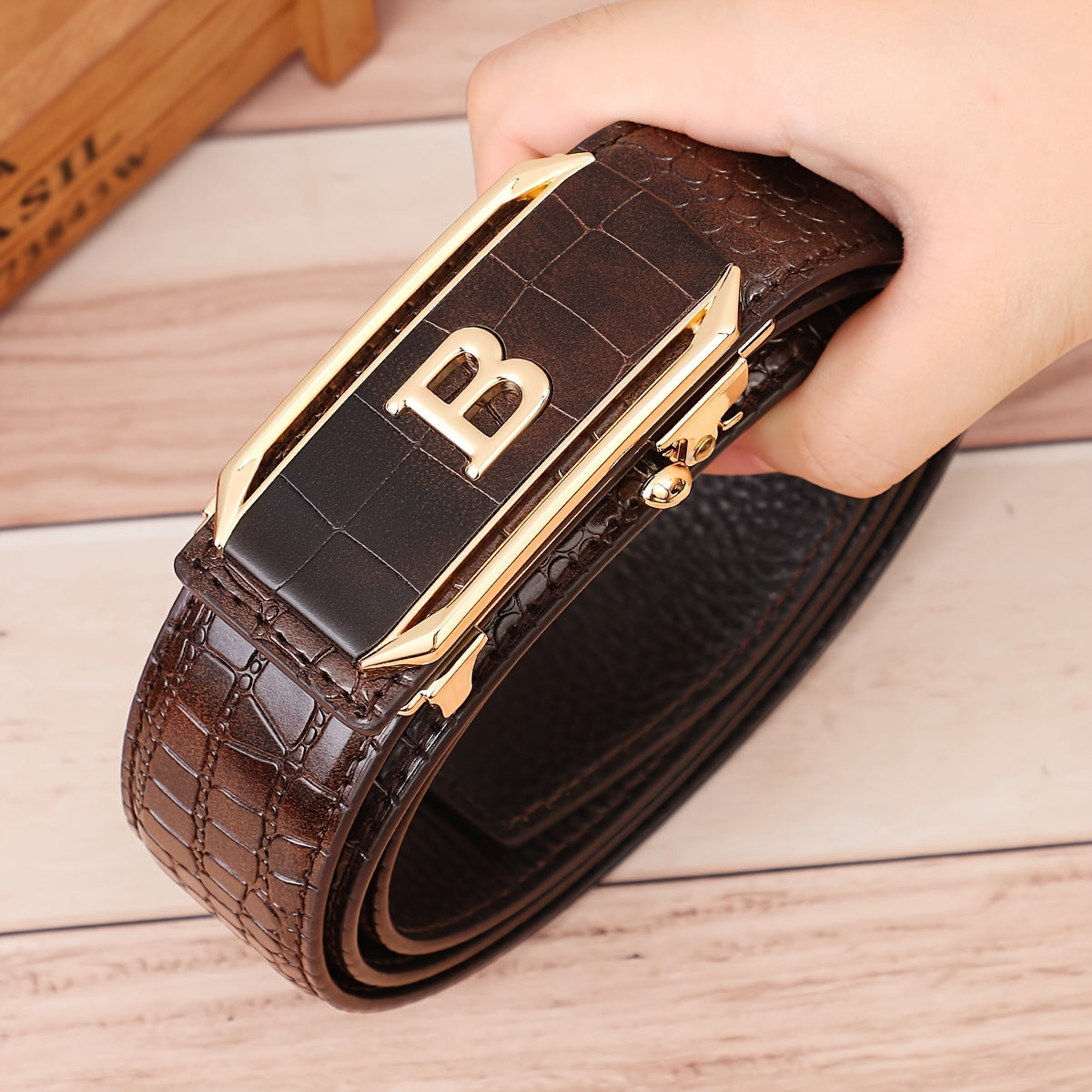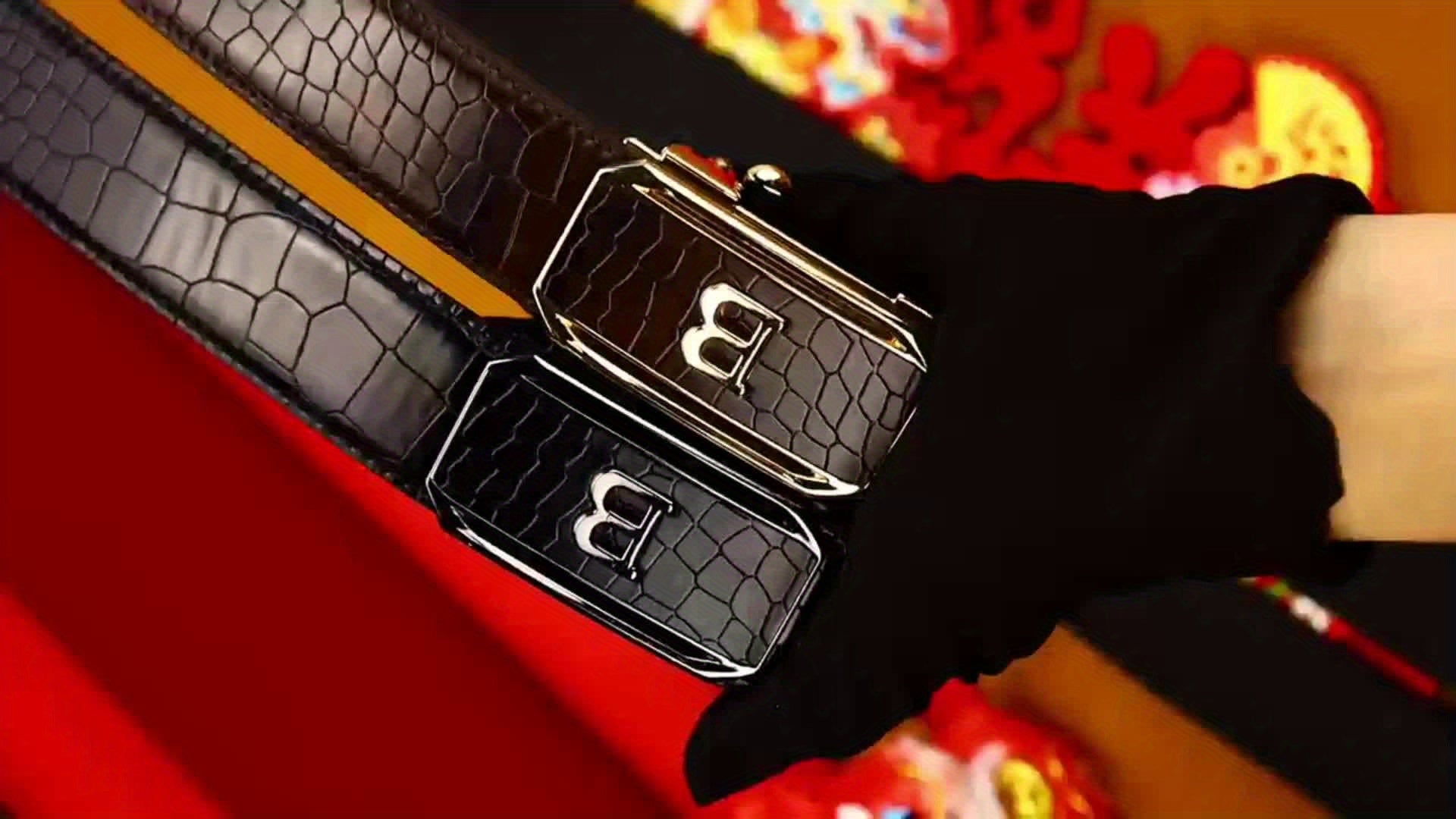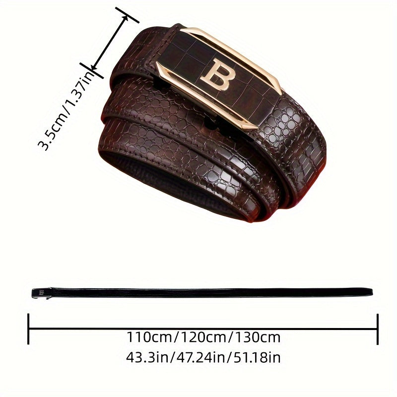 Men's Genuine Leather Cowhide Belt with Alloy Automatic Buckle