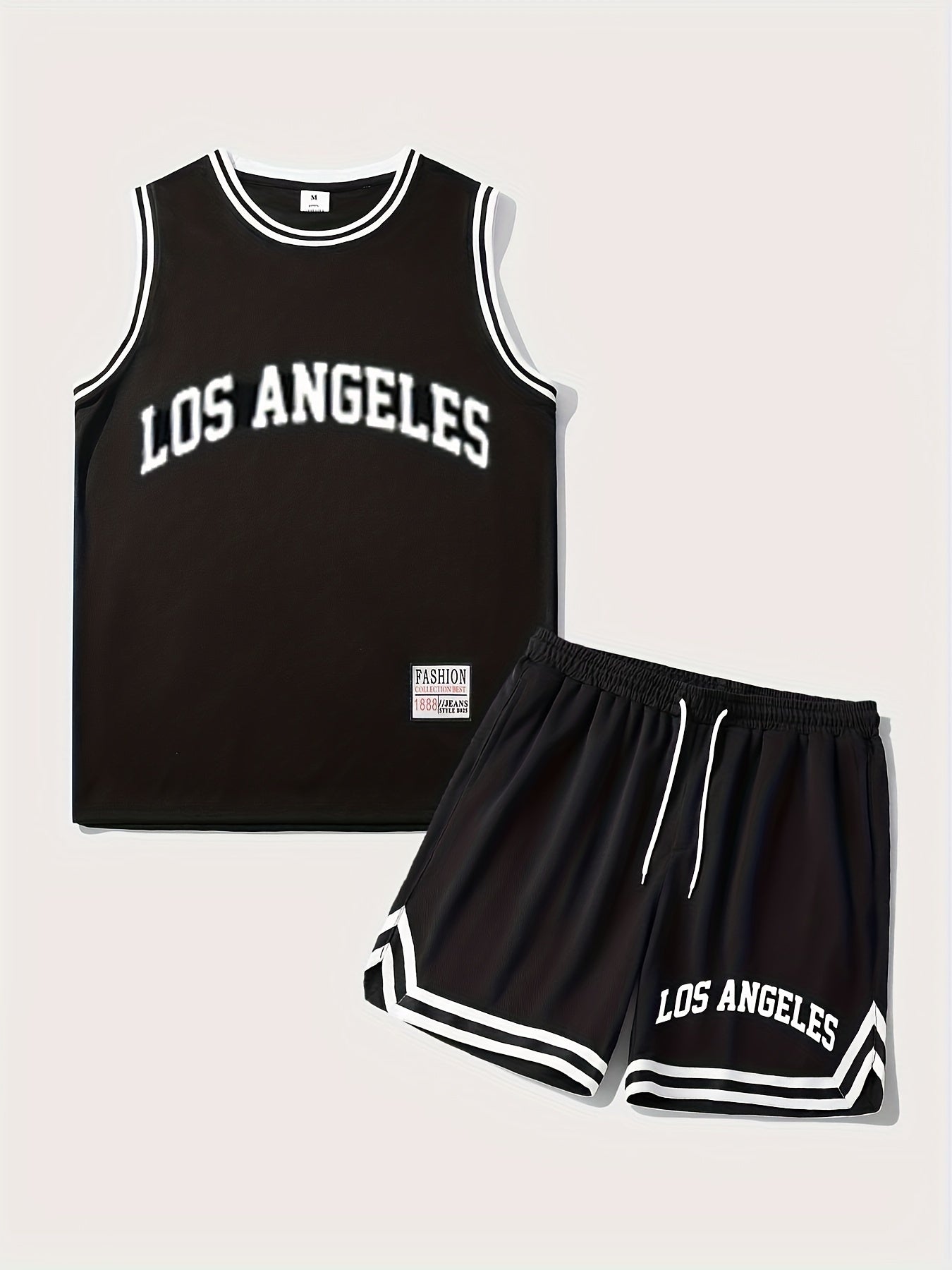 Elevate your street style with our Los Angeles Letter Print Tank Top and Drawstring Shorts Set.