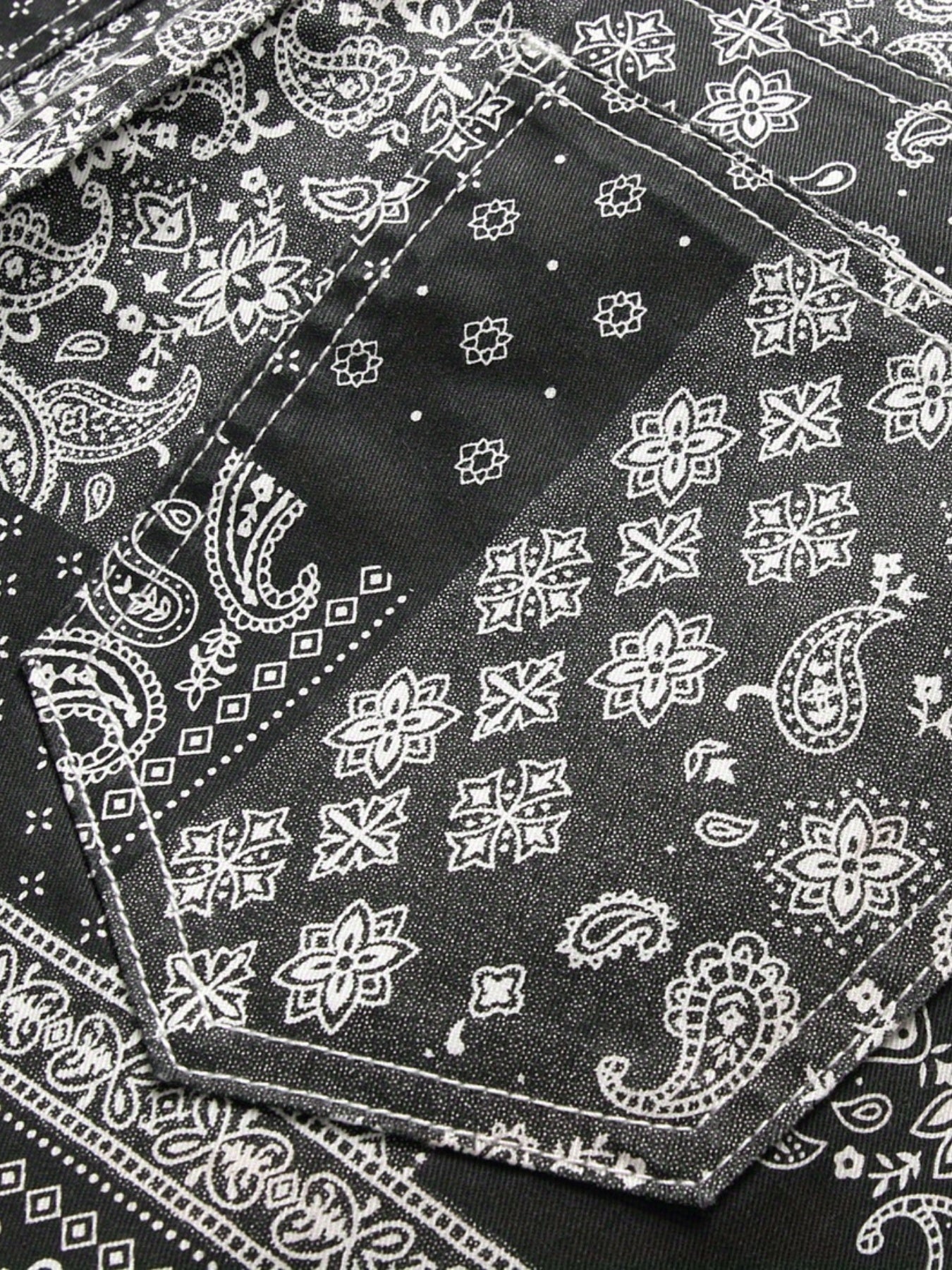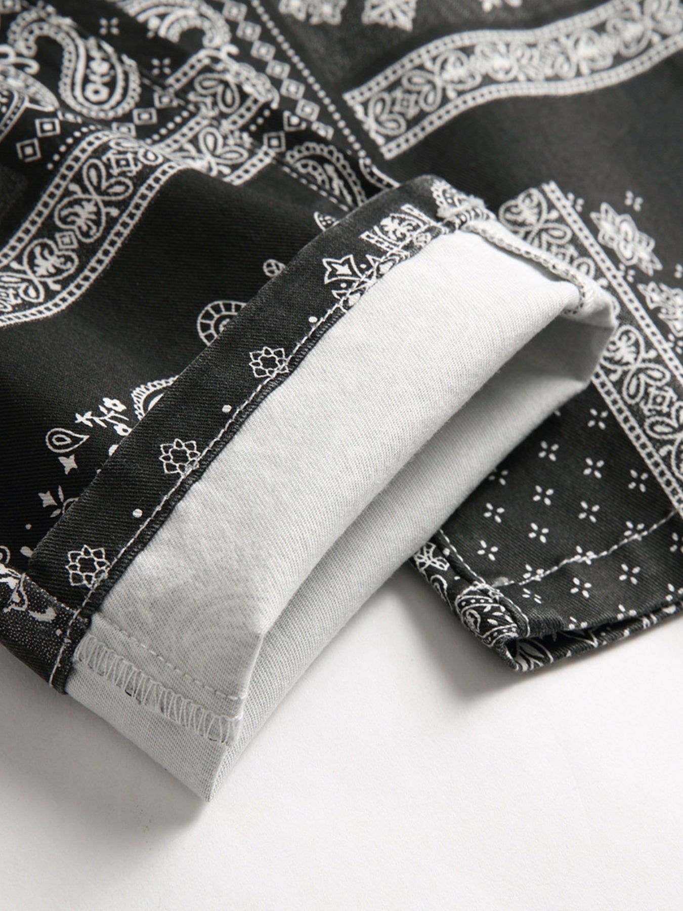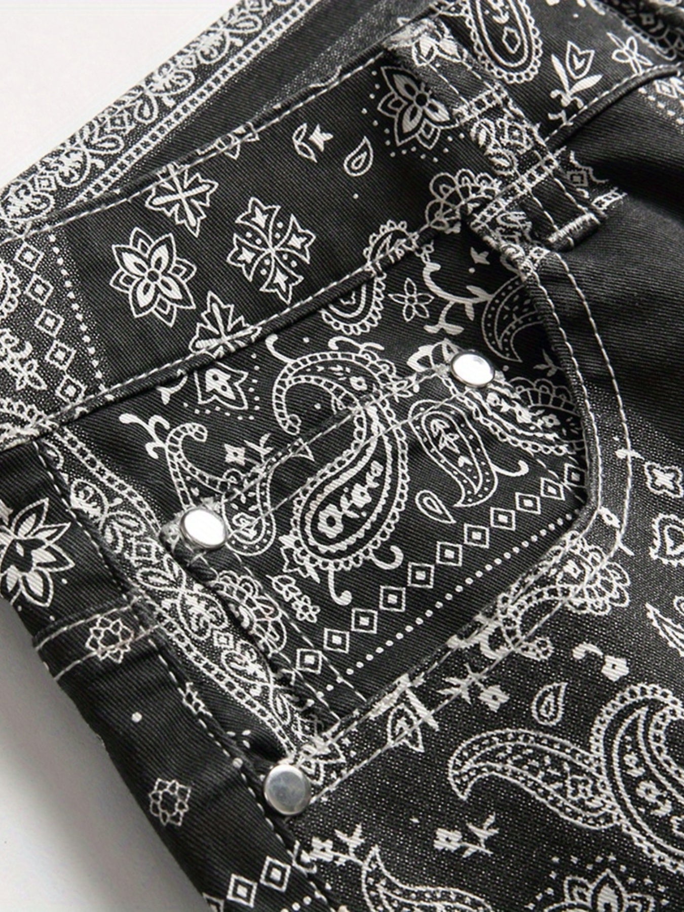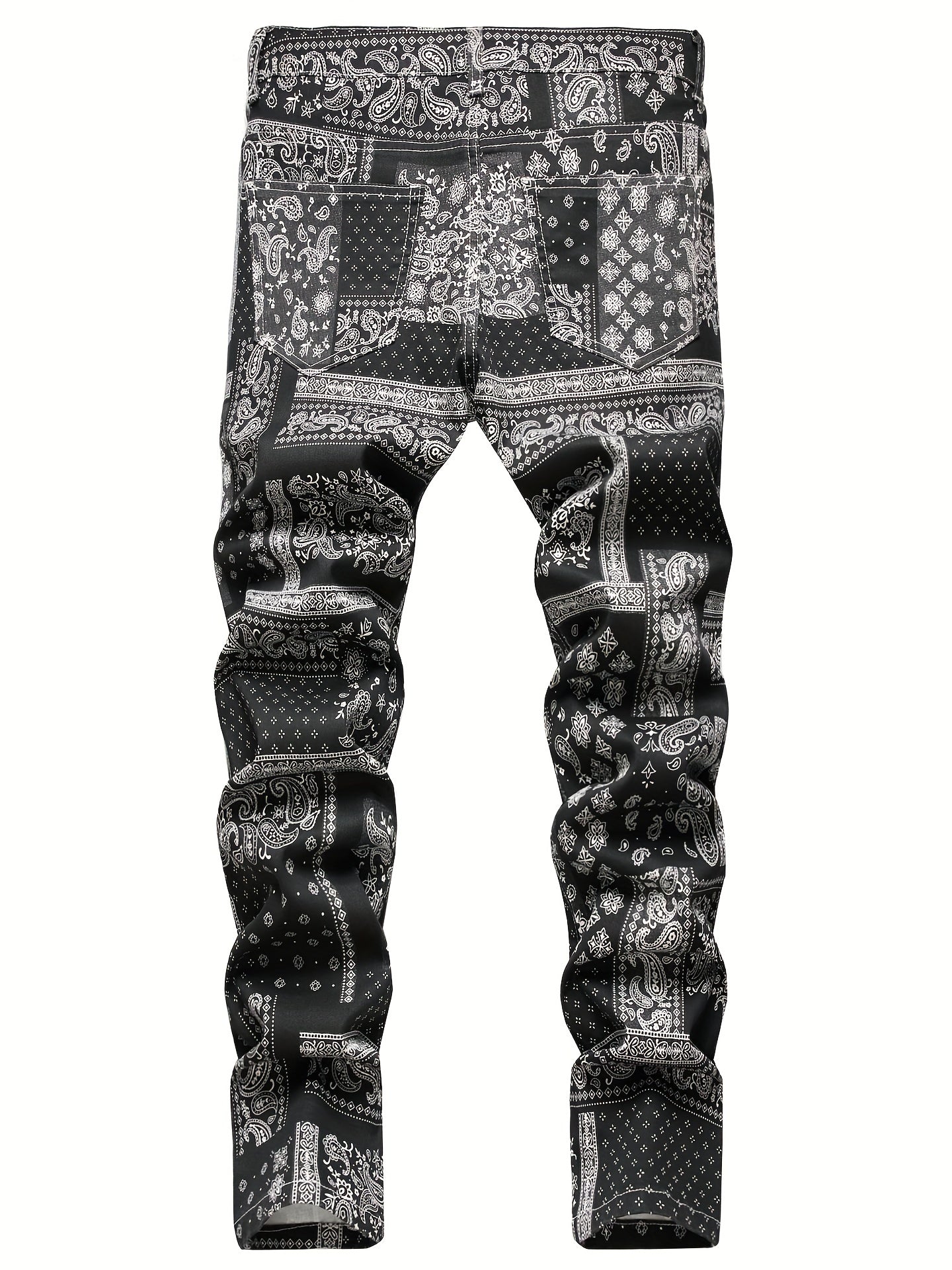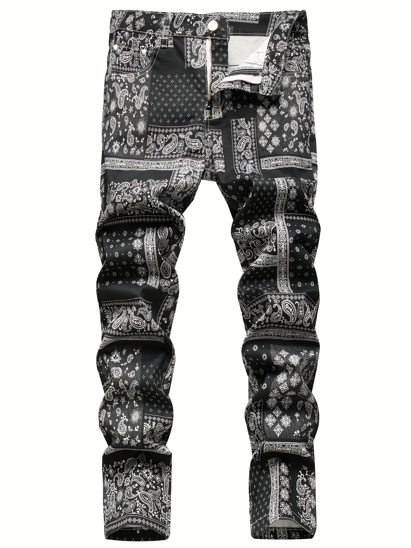 Men's Slim Fit Jeans - Paisley & Floral Pattern Denim Pants