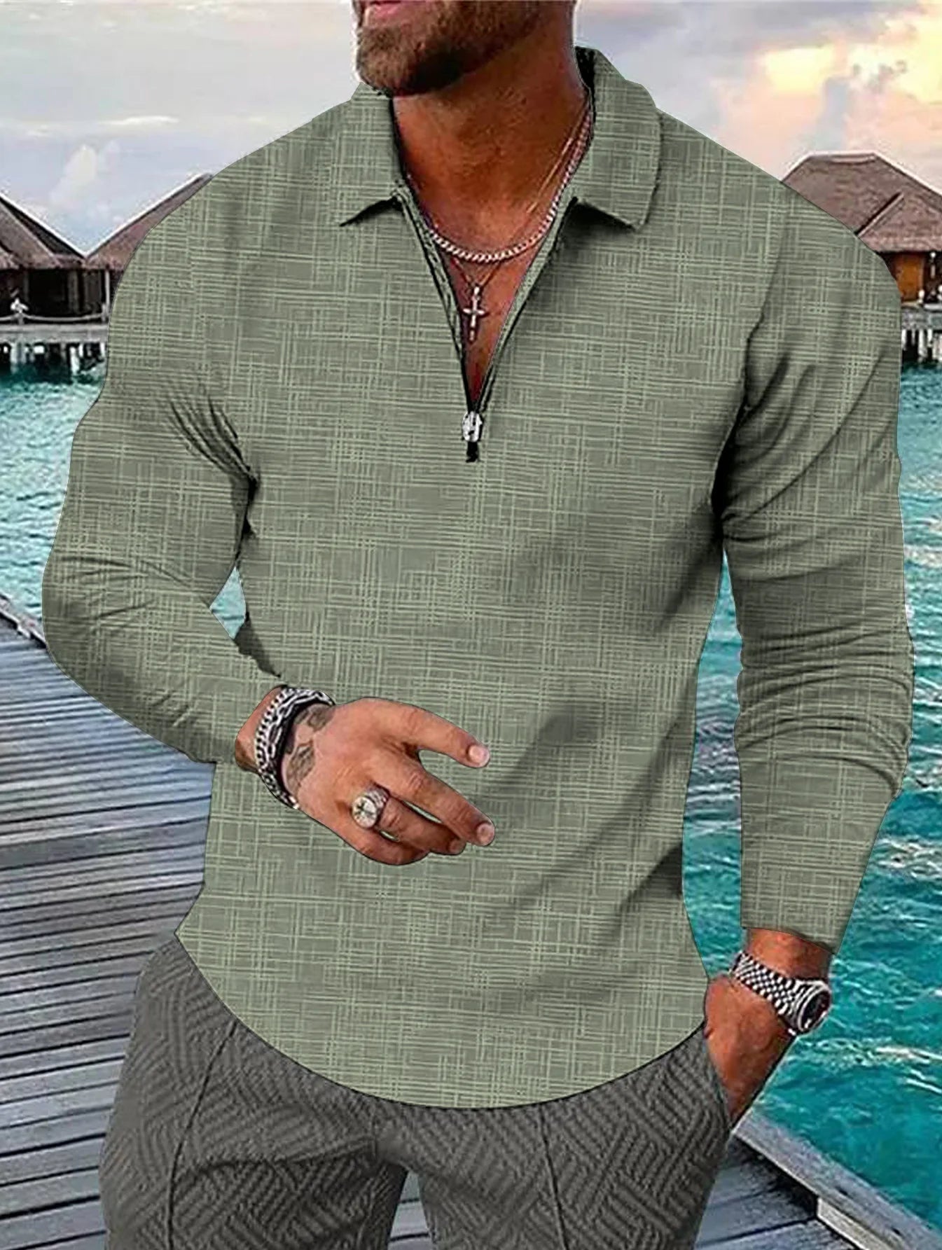 Men's Classic Lapel Polo Shirt - Long Sleeve