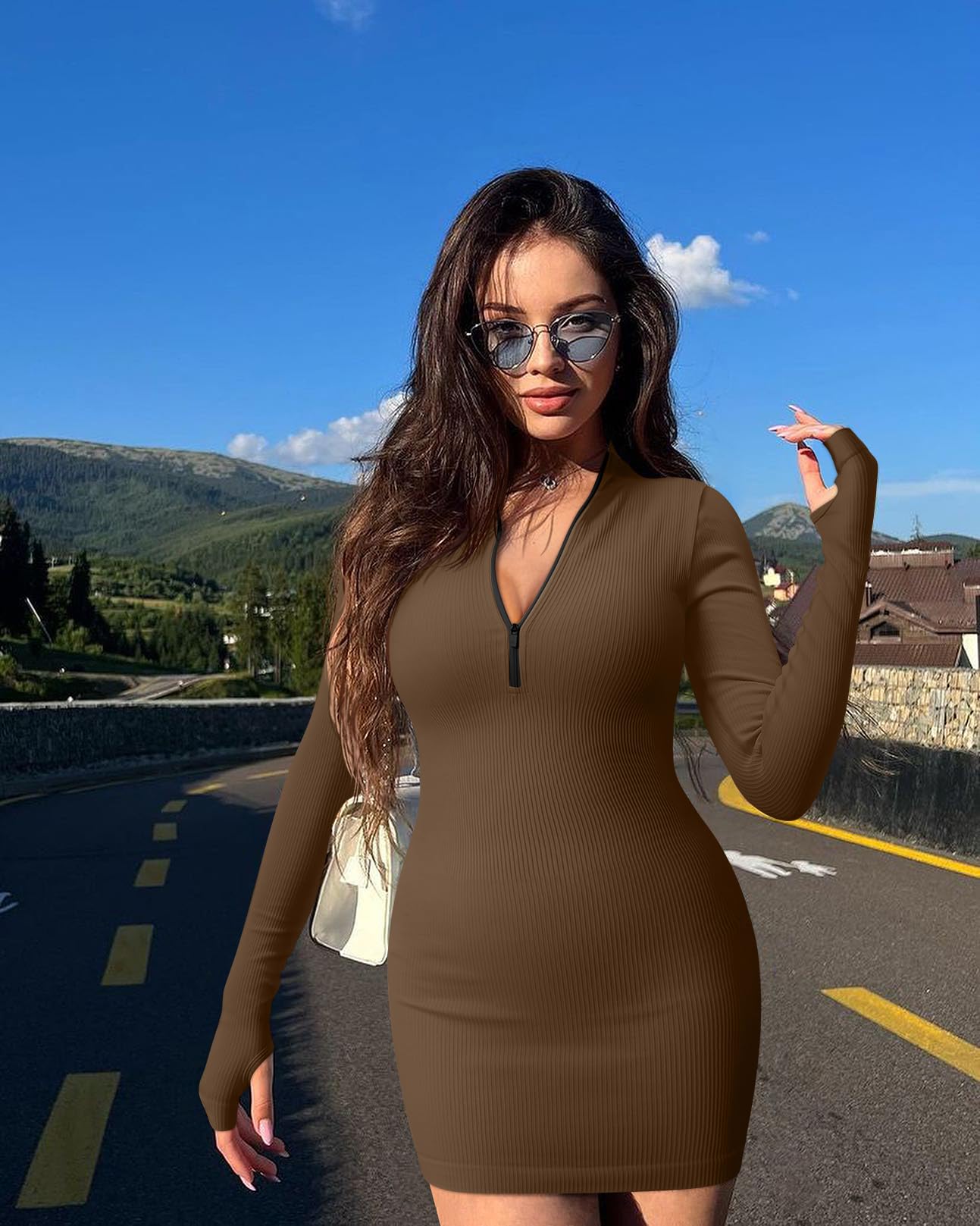 - Sexy Zip Mock Neckline Long Sleeve Mini Dress, favorable zip front, mini length, mock neckline, long sleeve, simple in design, don’t see through, best women, ladies and teen girl clothes.