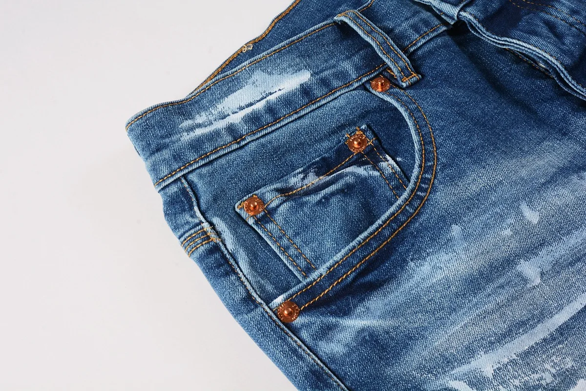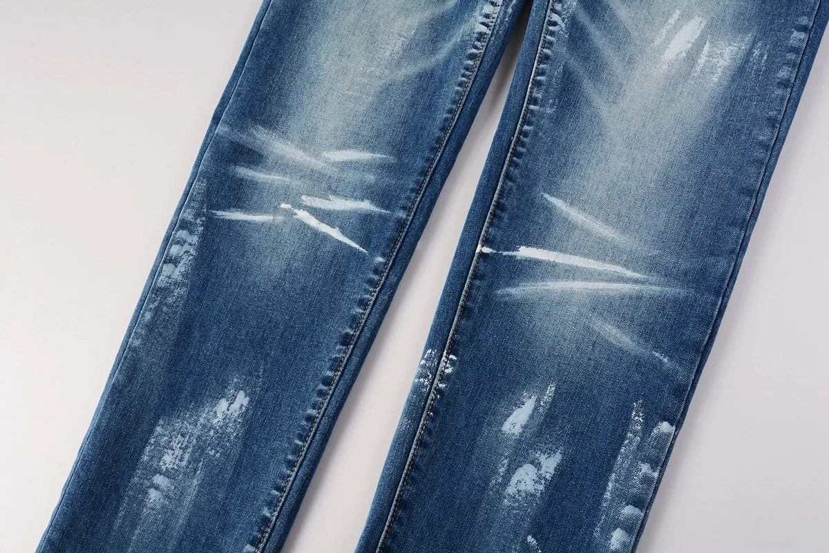 *NEW ARRIVAL* Blue Distressed Paint Design Denim Jeans - Slim Fit