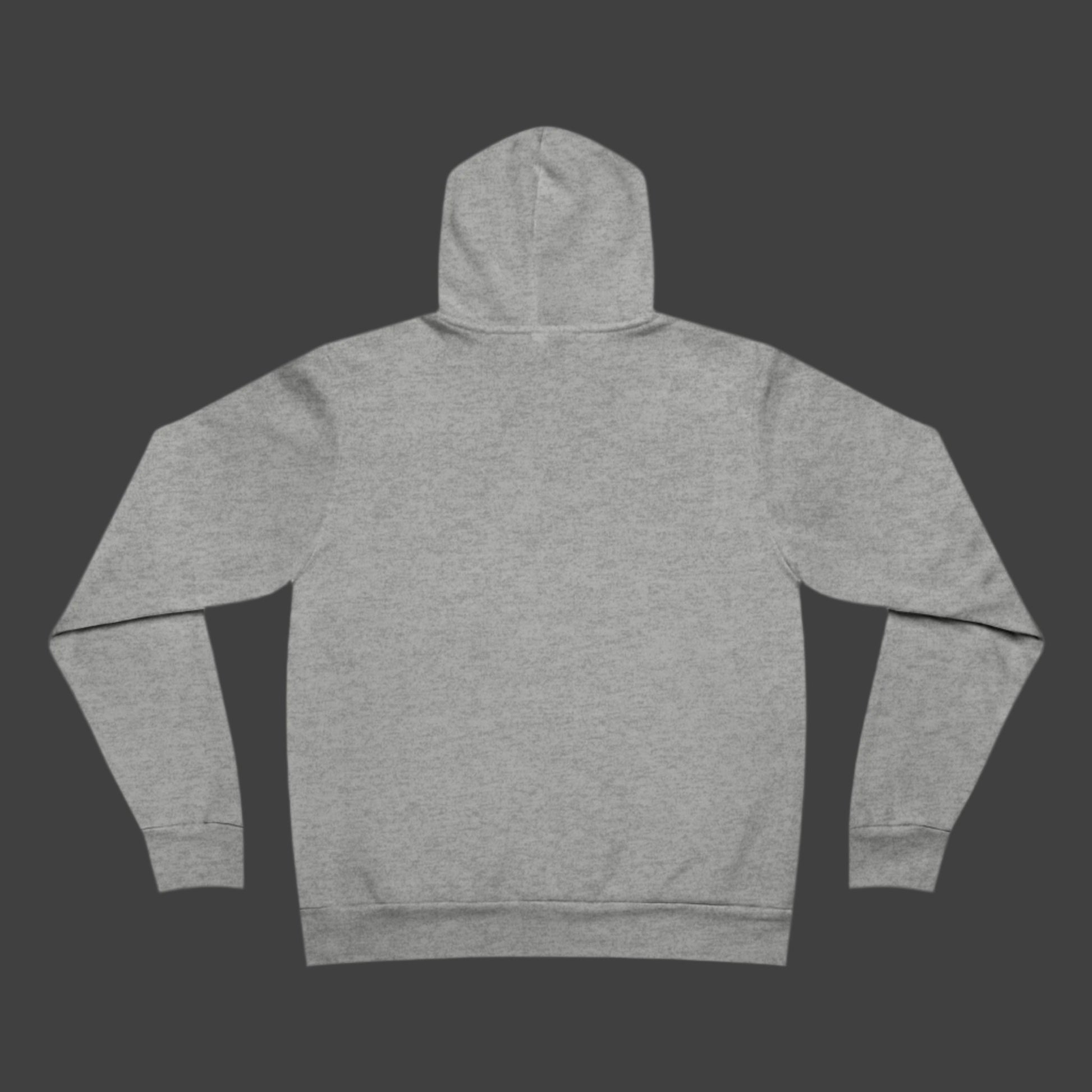 The unisex sponge fleece pullover hoodie is a blend of Airlume cotton and polyester. The percentages vary according to color. A pouch-style pocket spreads across the lower half of the garment’s front. The hood can be tightened with a white drawcord. Both cuffs and waistband have ribbing for extra grip.