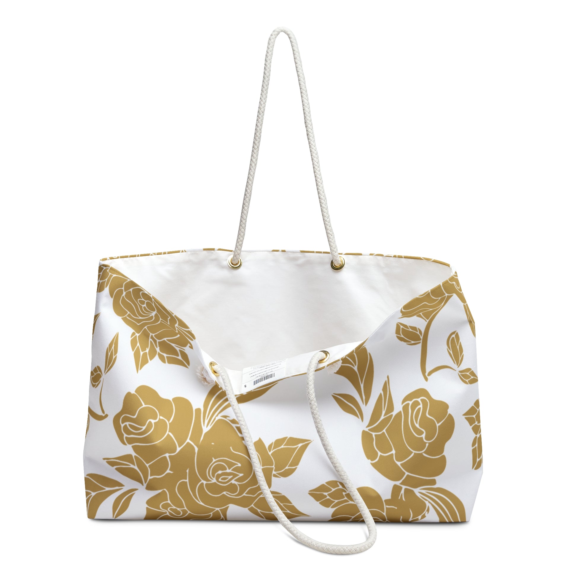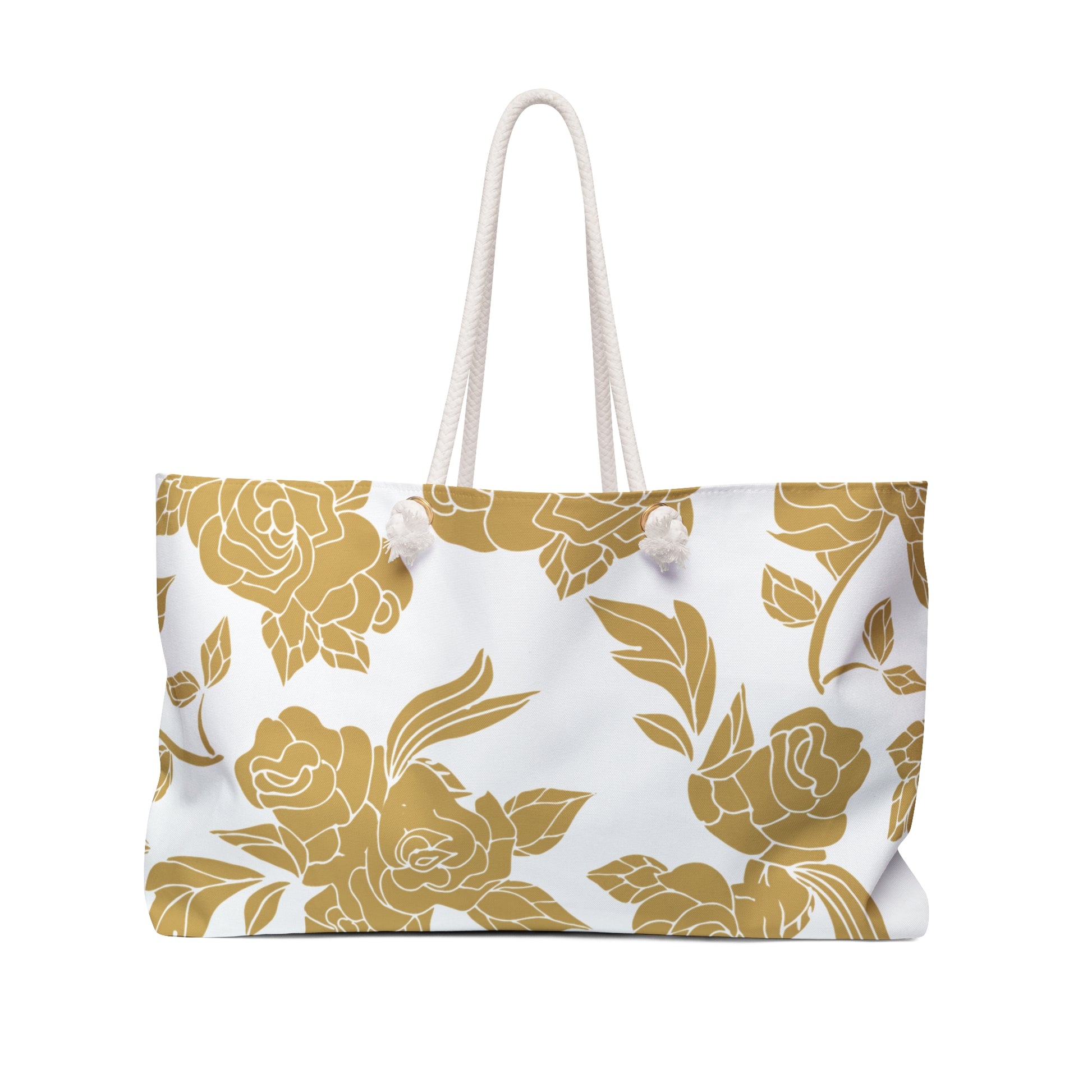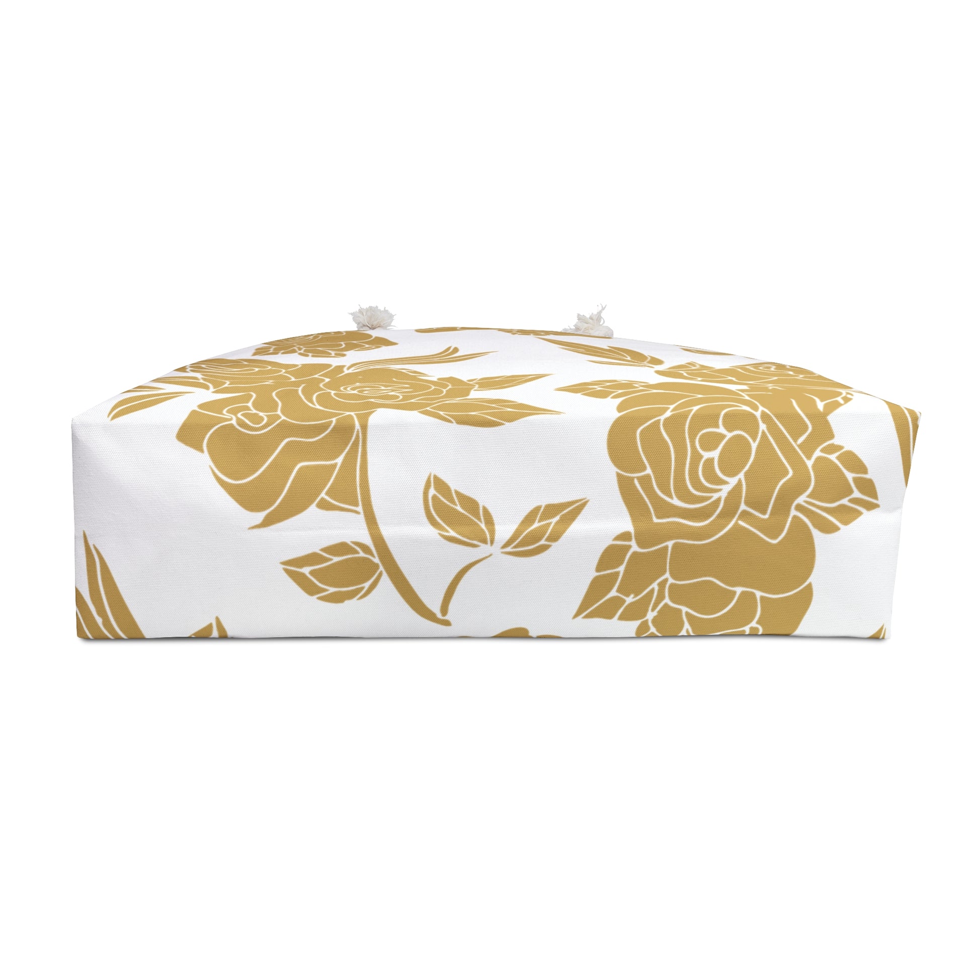 Our oversized Rose Floral tote is perfect for your weekend occasions or daily errands. The wide-mouthed, durable bag holds a generous amount of personal items and is easily held by its thick rope handles.