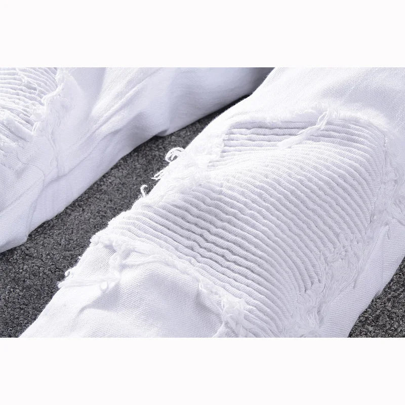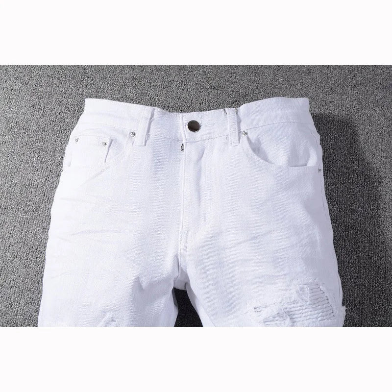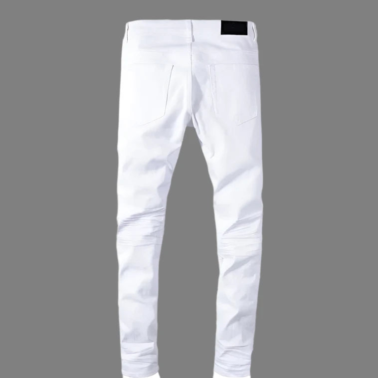 Men's White Distressed Stretch Skinny Jeans - Slim Fit