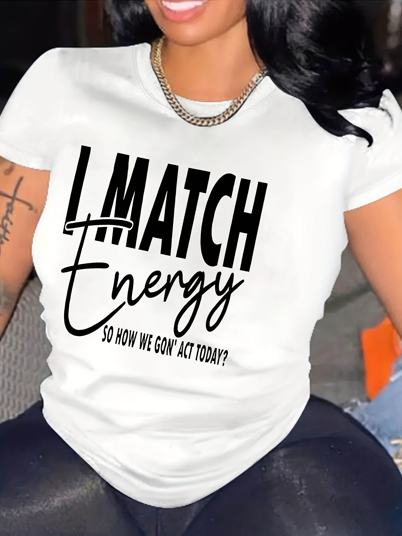 "I MATCH ENERGY" Women's Letter Print Casual Tee